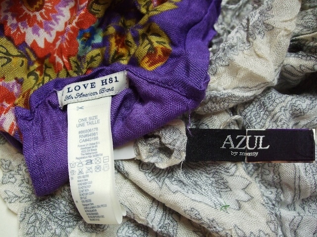 (^_^)スカーフ11枚セット/福袋/まとめて/MIX/ブランド/シルク含/AZUL/アズール/ローリーズファーム/アナスイ/エル/ELLE/ビルブラス新品/023