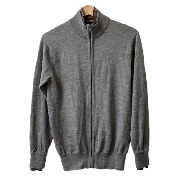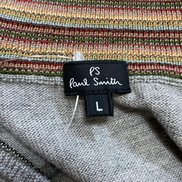 ポールスミス PaulSmith カーディガン サイズL - グレー×ダークブラウン×マルチ レディース 長袖/ニット/ジップアップ トップス