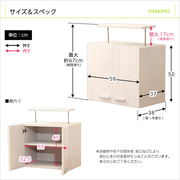 外寸:(約)幅59x奥行き37x高さ50~67cm