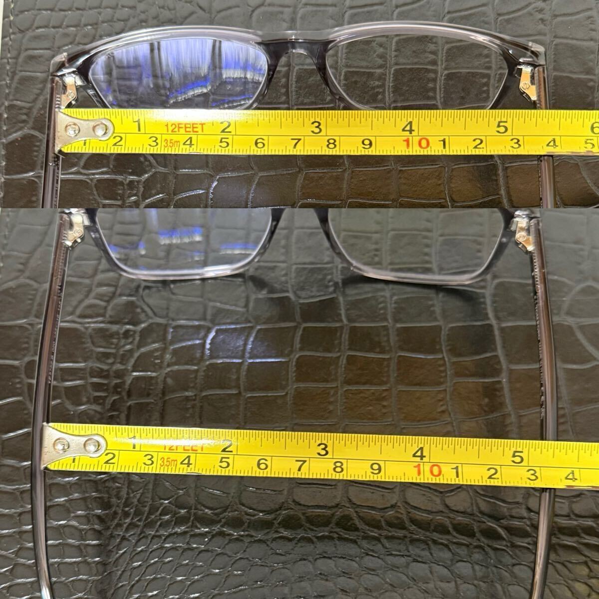 写真での採寸のとおり、横幅は前部分が約13.5センチです。後ろ部分が約13センチです。お持ちのメガネのサイズがそれから1センチ前後のサイズ感であればおそらく着用いただけます。