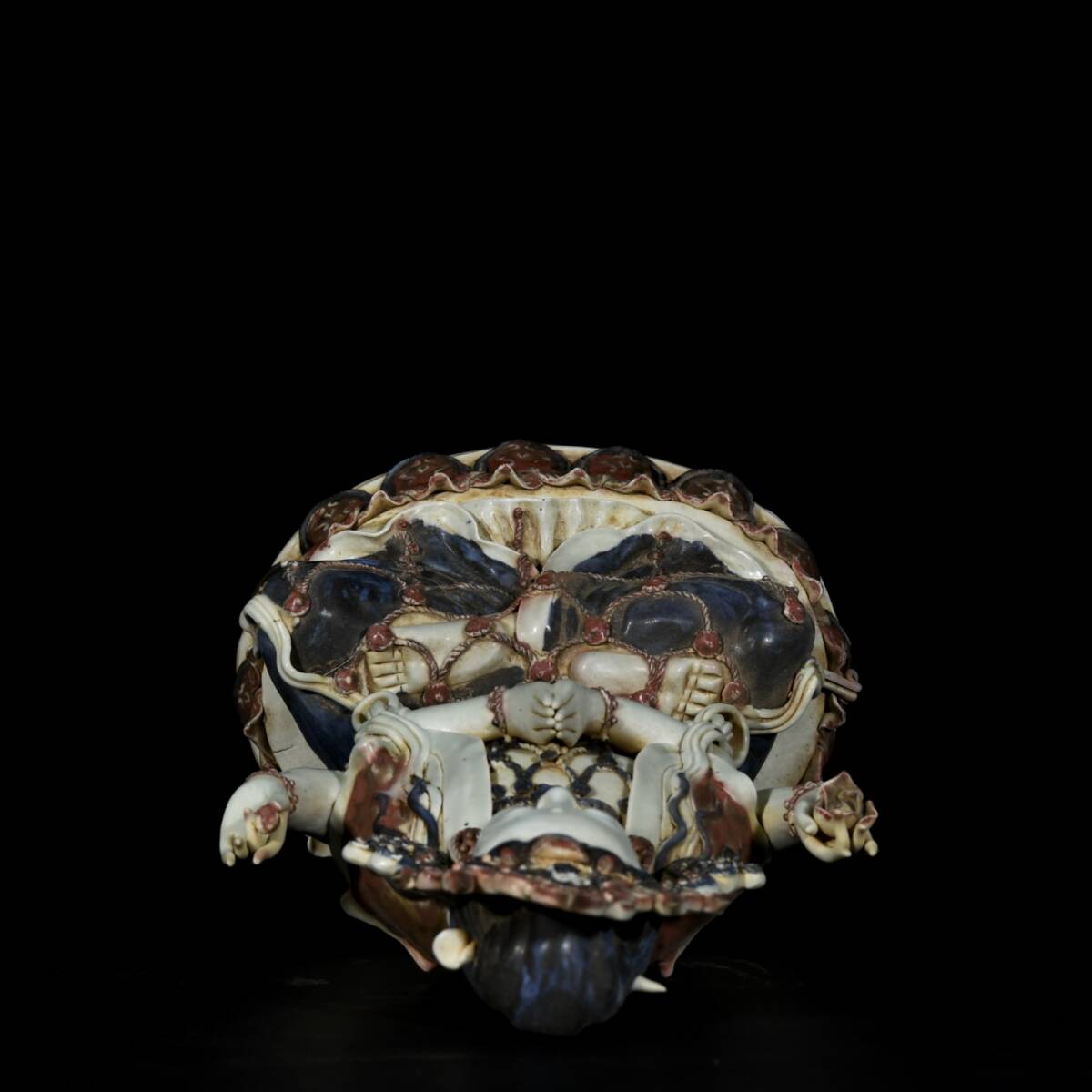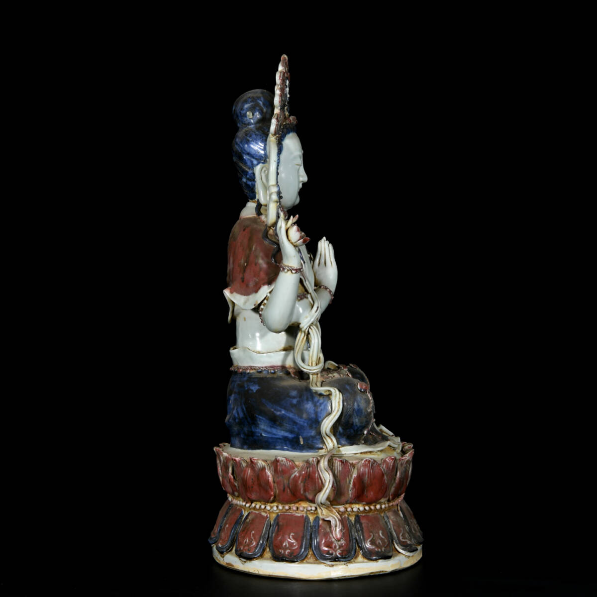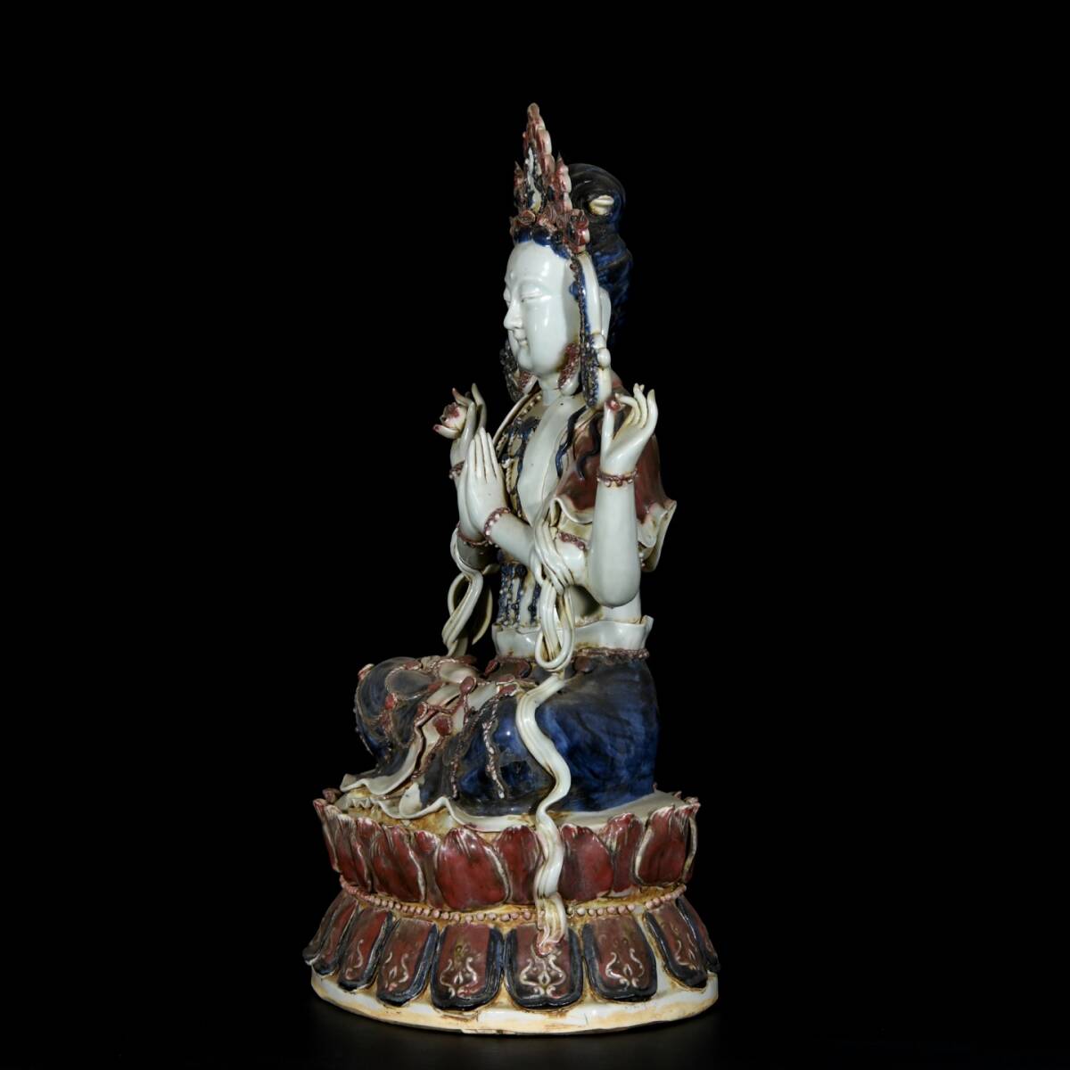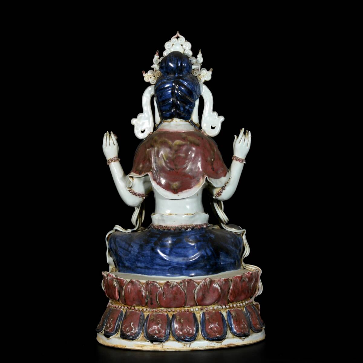 *珍品旧蔵* 元 青花 釉裡紅 坐蓮四臂觀音 仏像 陶磁器 極細工 唐物 中国磁器 中国古玩 陶芸 H44