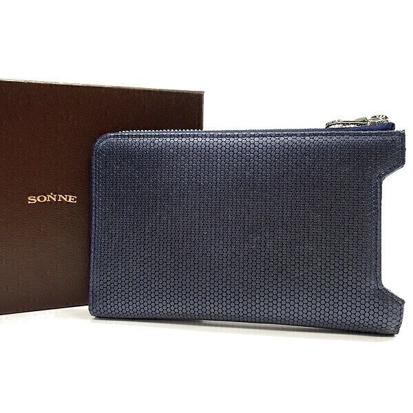 | SONNE ゾンネ 新品 CHIP STAR メタリック型押しレザー 牛革 L字ジップ マルチウォレット 財布 小銭入れ付き SOI002A NAVY ▲008▼bus007so | |||