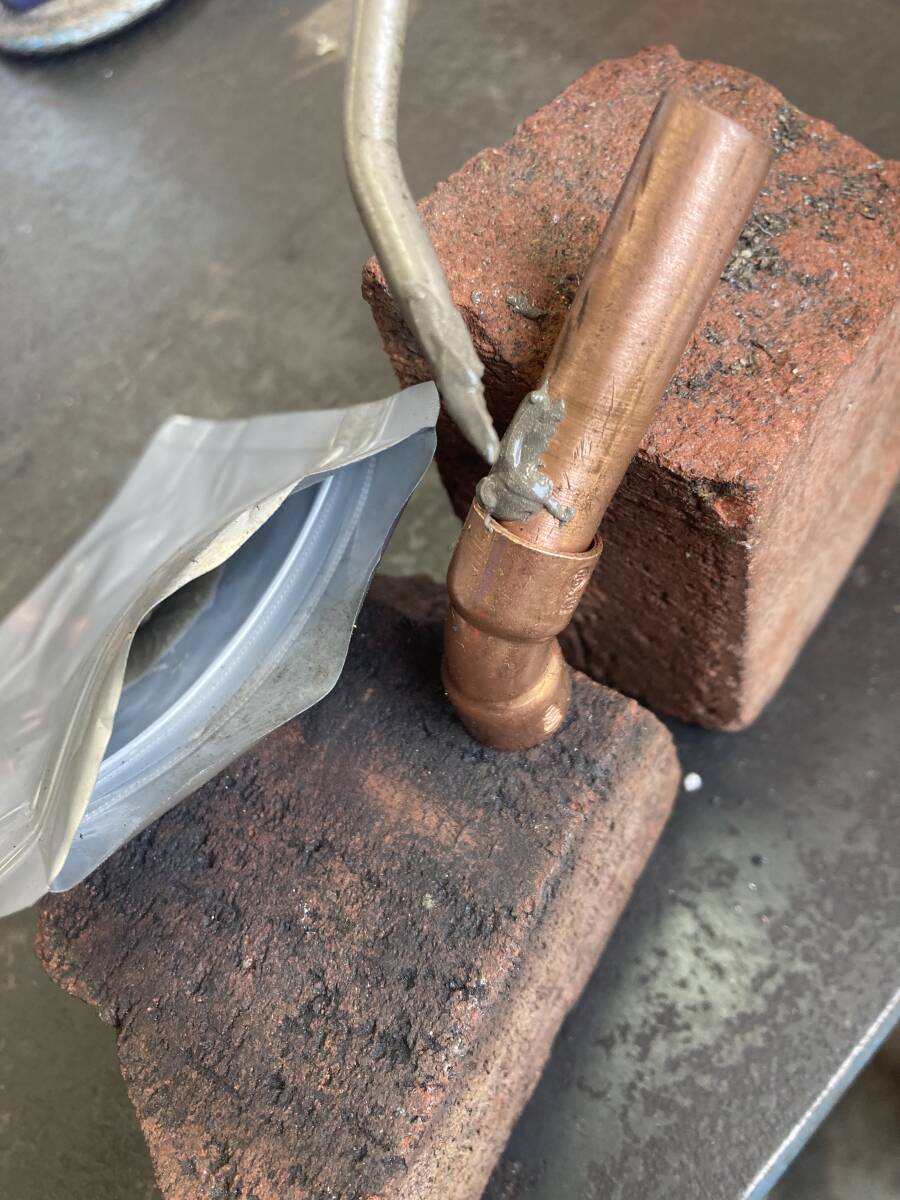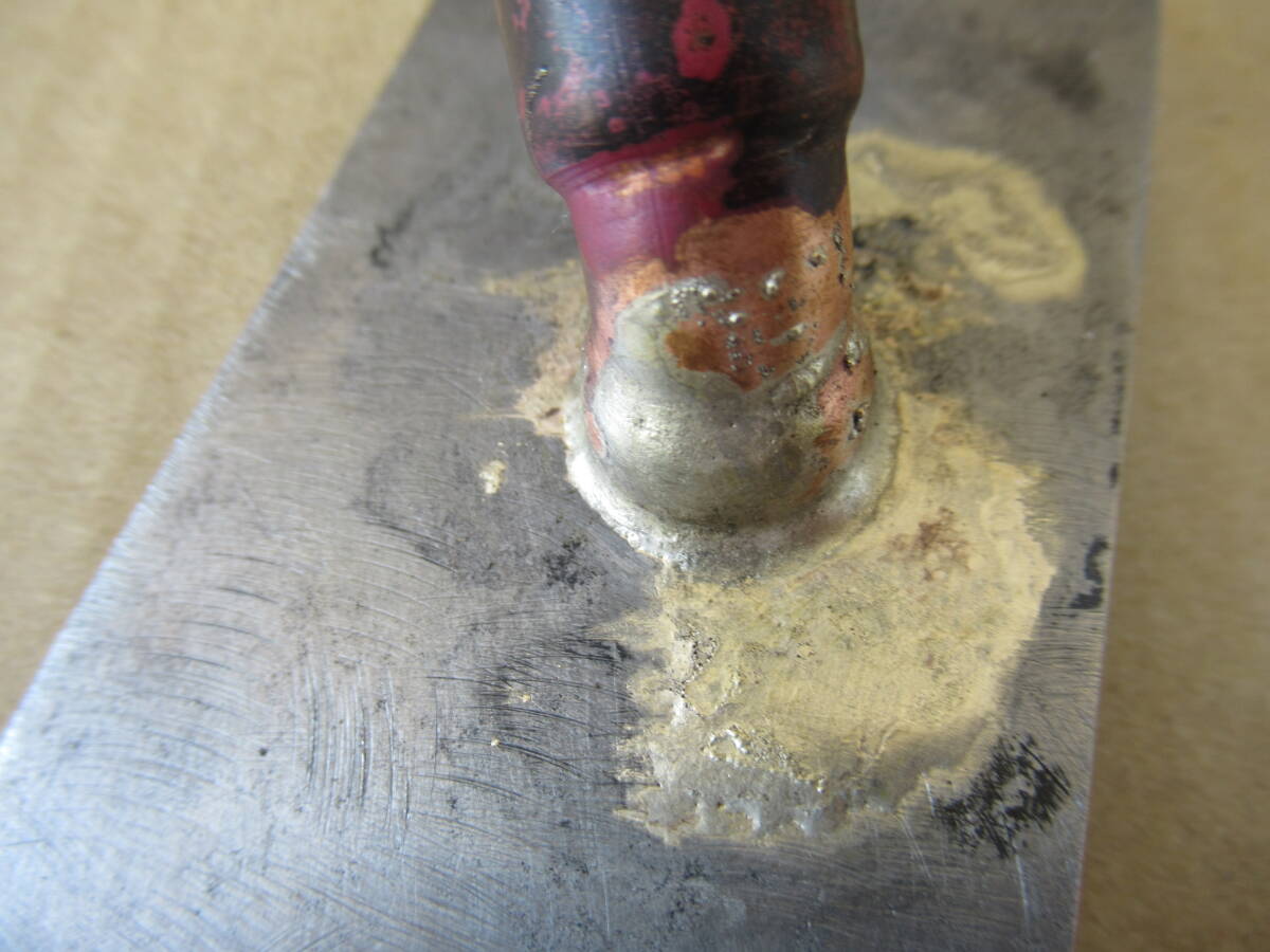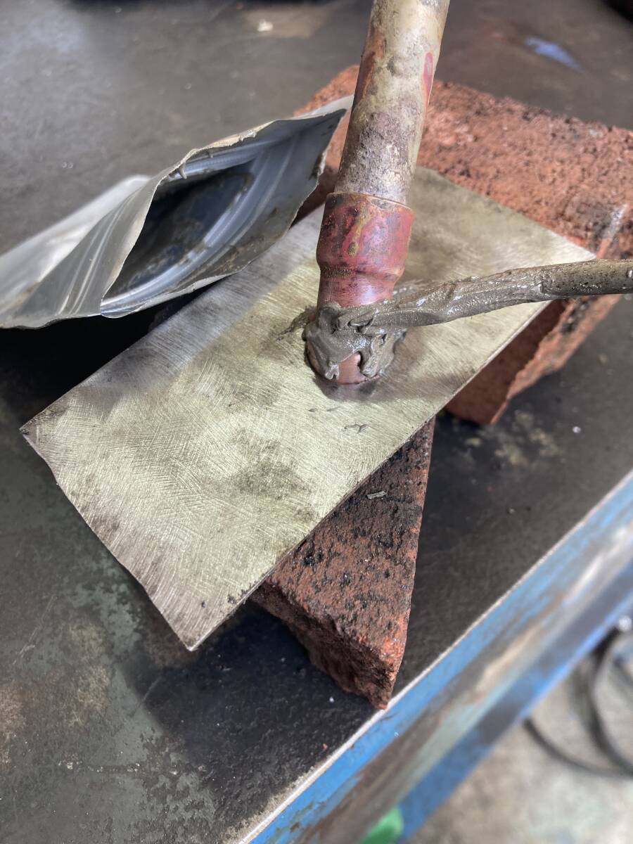 3.ペーストが溶けて隙間に流れ込んだら火を離して500℃以下になるまで自然冷却しその後水冷します。
