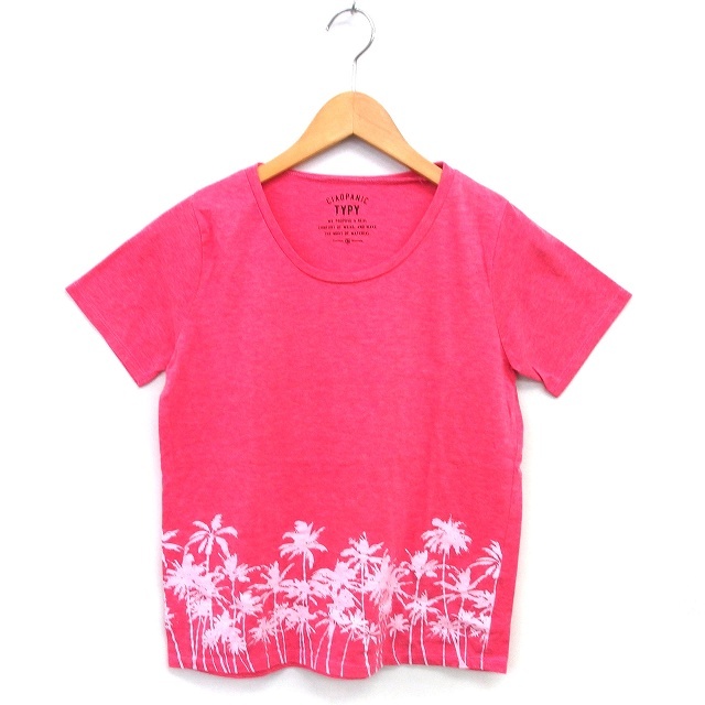 チャオパニック ティピー CIAOPANIC TYPY カットソー Tシャツ ヤシの木柄 パーム柄 プリント ラウンドネック コットン混 半袖 F ピンク