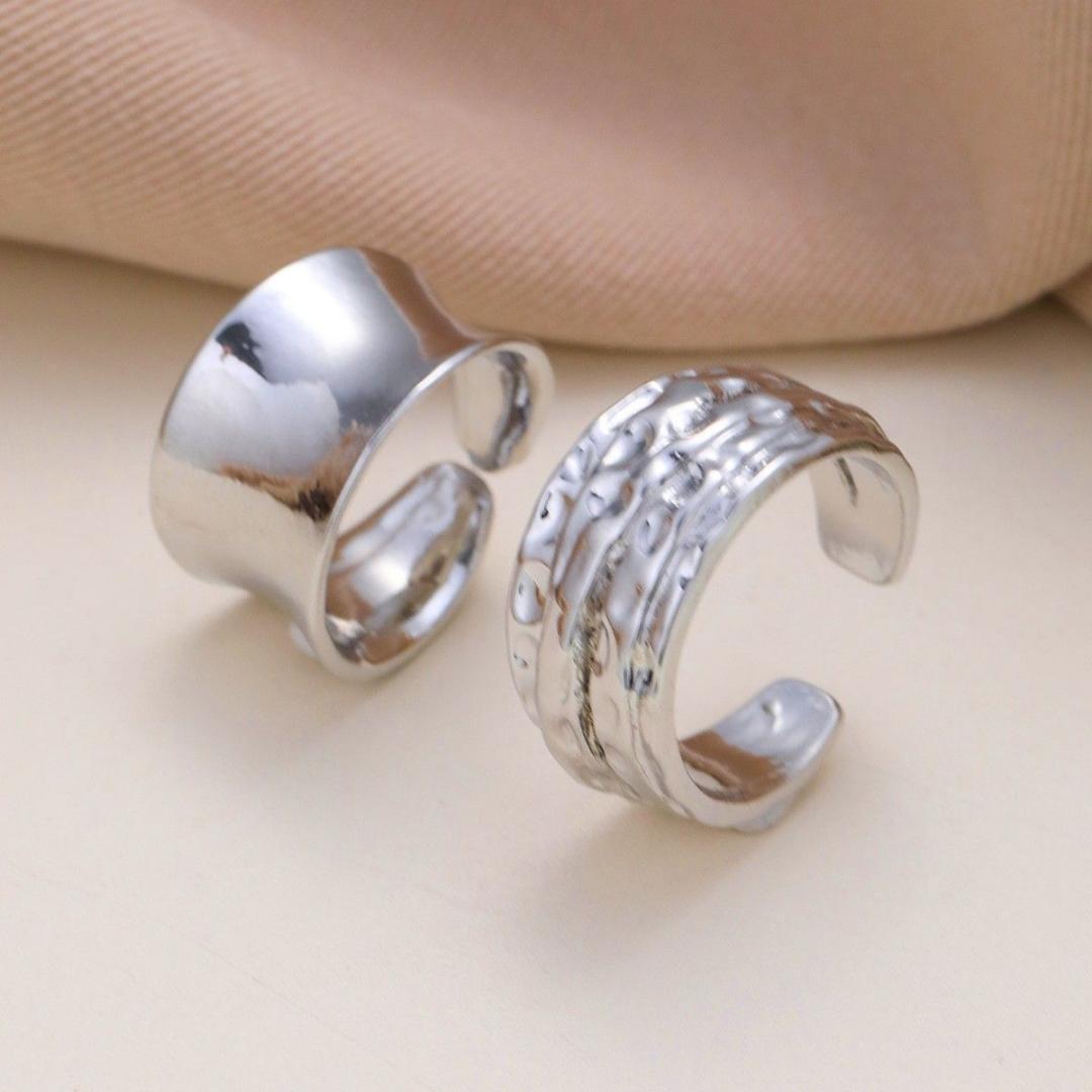 2個セット ワイドエッジ 幾何学的 ラッピングリング(オープンリング)