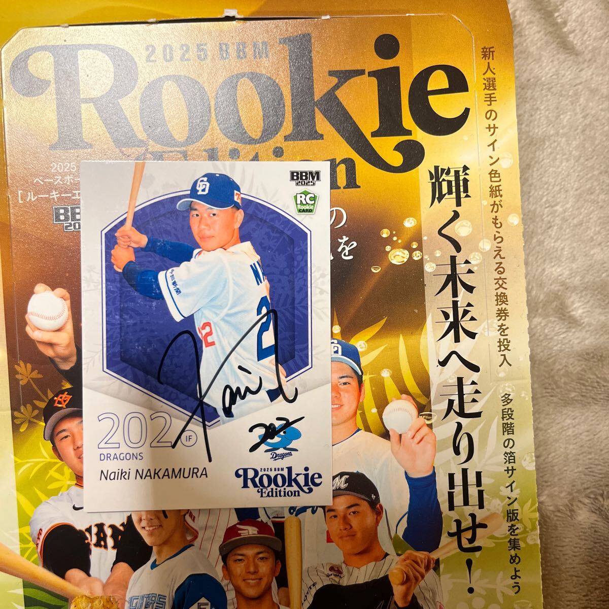 中日ドラゴンズ中村奈一輝選手直筆サインカード
