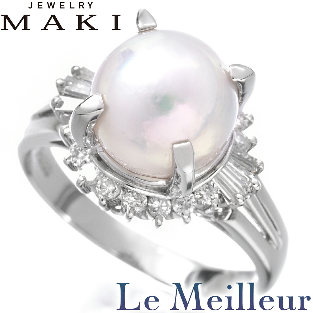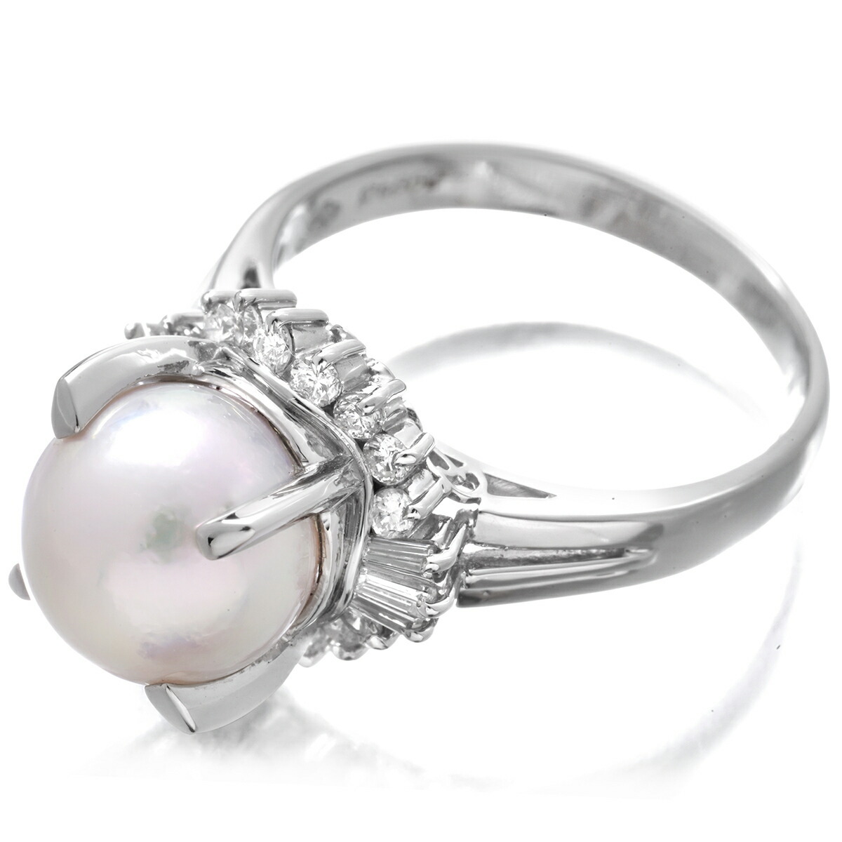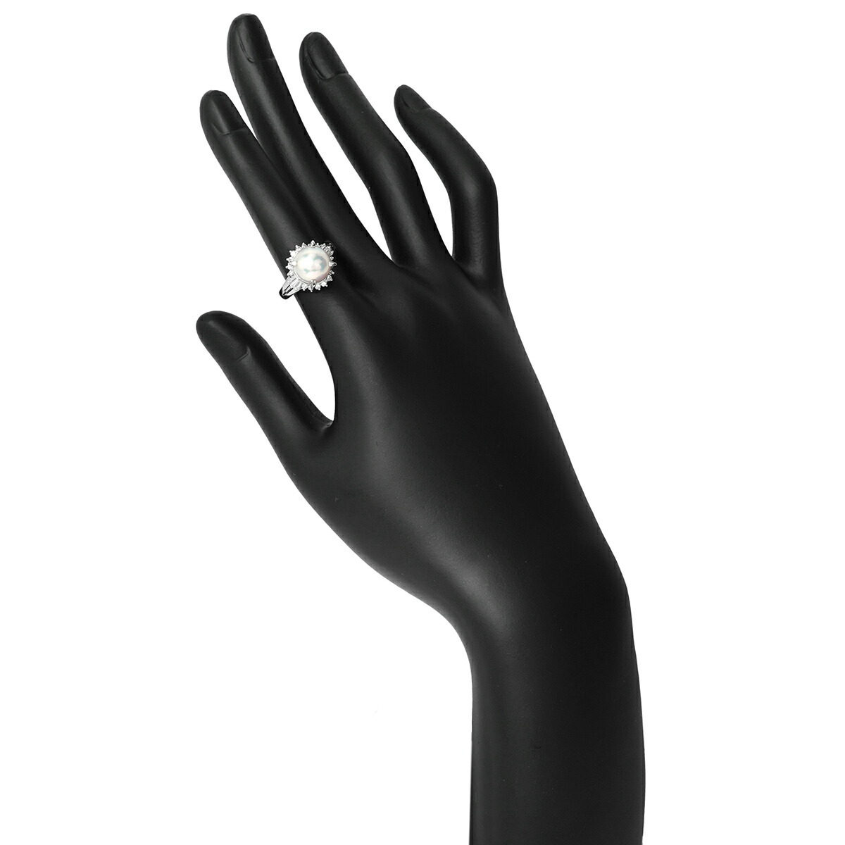 圧倒的な存在感を放つ大粒のアコヤ真珠が主役のリング。立爪で固定されたパールの周りにはダイヤモンドが配置されており、インパクトと繊細さを両立させた逸品です。