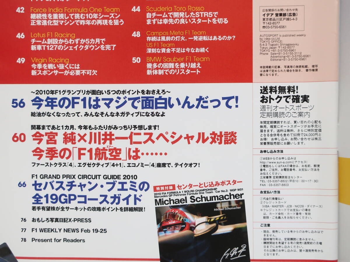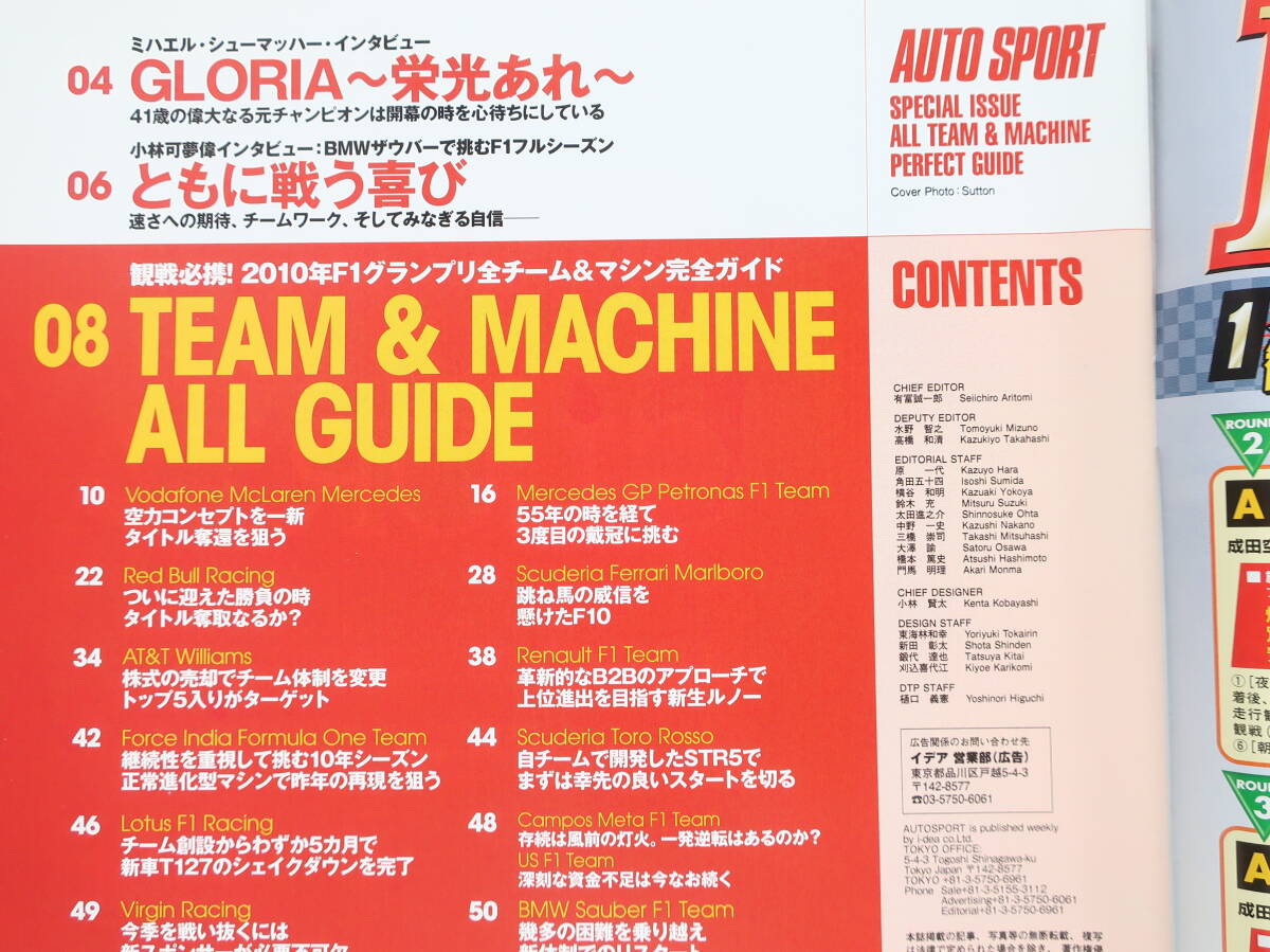 | 週刊AUTO SPORT/オートスポーツ/臨時増刊号/2010年版/永久保存版グラビア/特集:F1全チーム&マシン完全ガイド/Formula One/フォーミュラワン | ||||