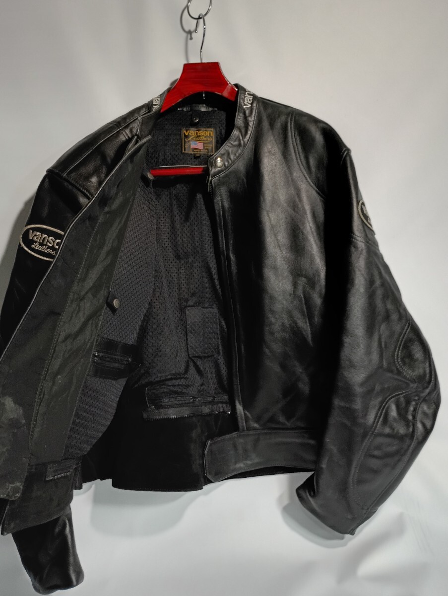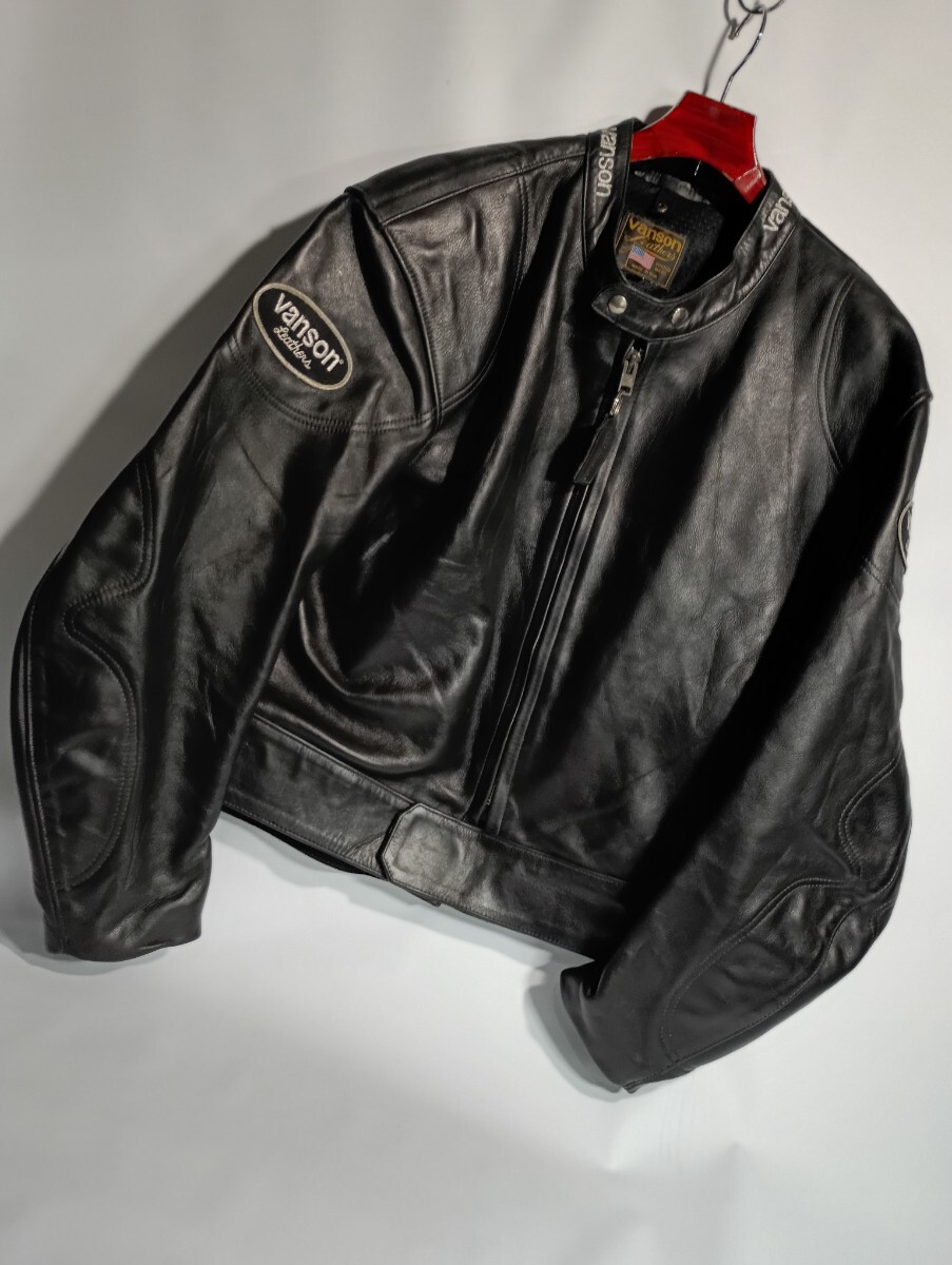 VANSON バンソン USA製 特大 キングサイズ ワンスター 本革レザー スタンド シングルライダースジャケット 黒 56 ブラック