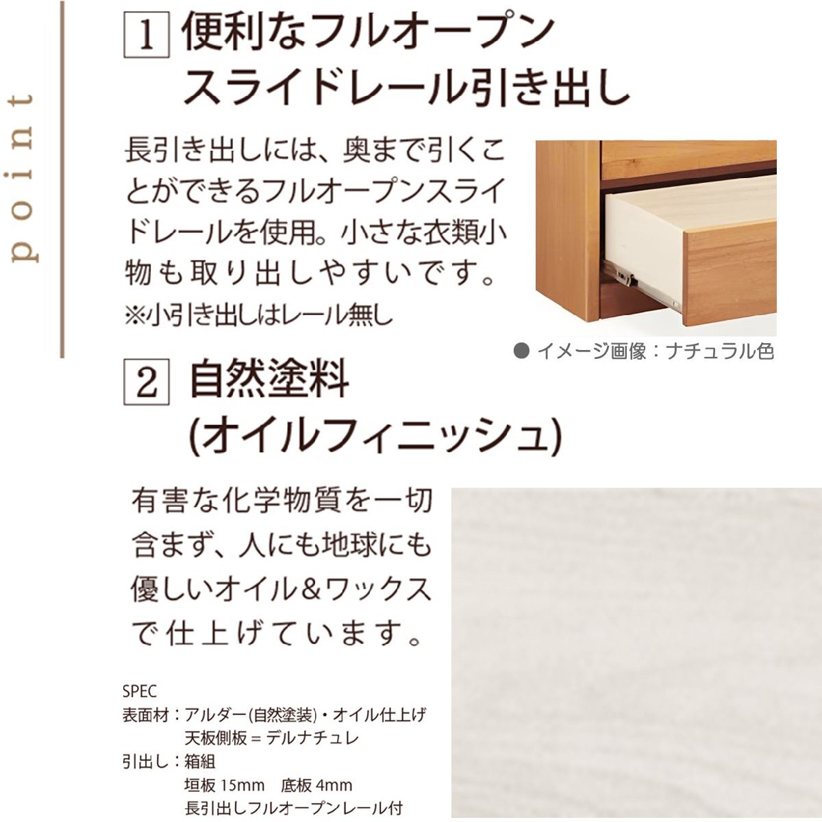 材  質表面材:アルダー無垢材(自然塗装オイル仕上げ)
