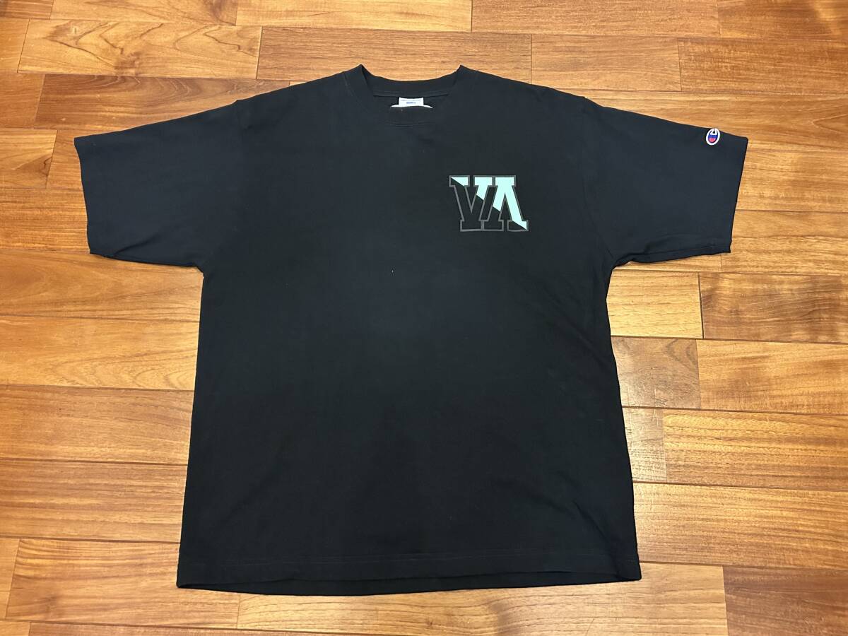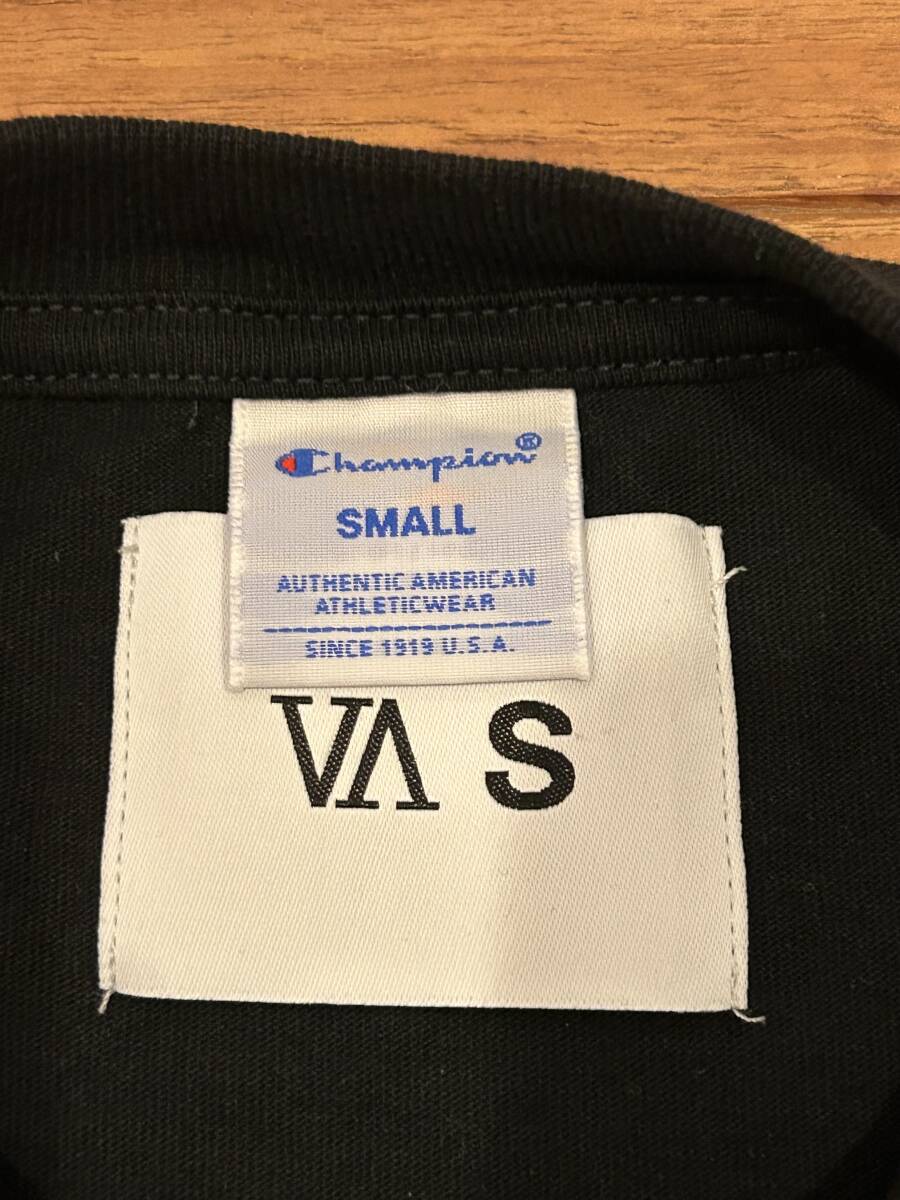 V.A.TOKYO (Various Artists)にて購入のチャンピオンTシャツ。表記サイズS。身幅55cm、肩幅49cm、袖丈24cm、後着丈68cm。新品購入後、2回着用。フロント左胸に「VA」とプリントされたシンプルなデザインのTシャツです。背面首元には小さく「VARIOUS ARTISTS」のロゴを配置。程よくゆとりのある半袖Tシャツ。耐久性と着心地の良さで定評のあるChampion社製のボディを使用。ユーズドにつき、ノーリターン、ノークレームでお願いいたします。