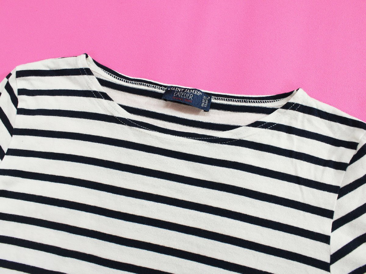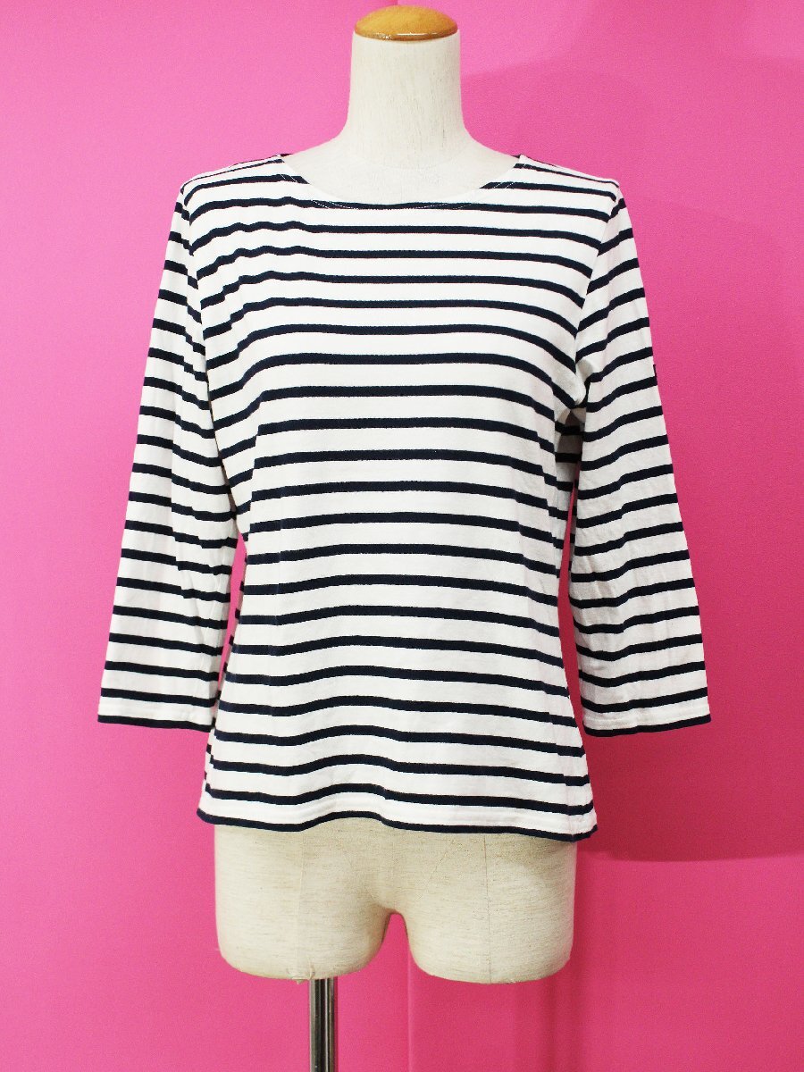 並行輸入品美品 セントジェームスラトリエ コットンボーダー柄7分袖プルオーバー 白8 rl075