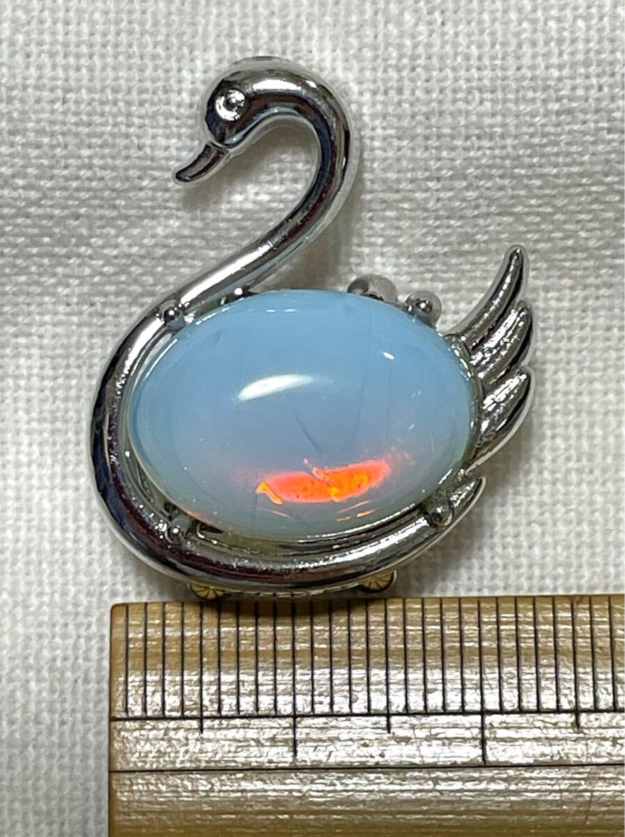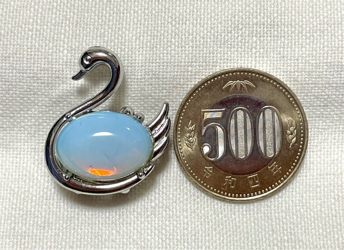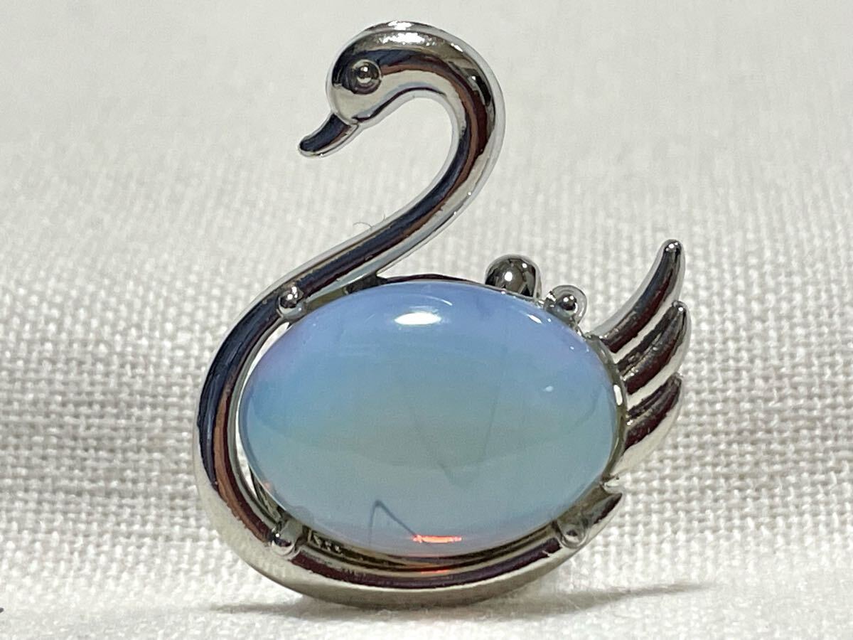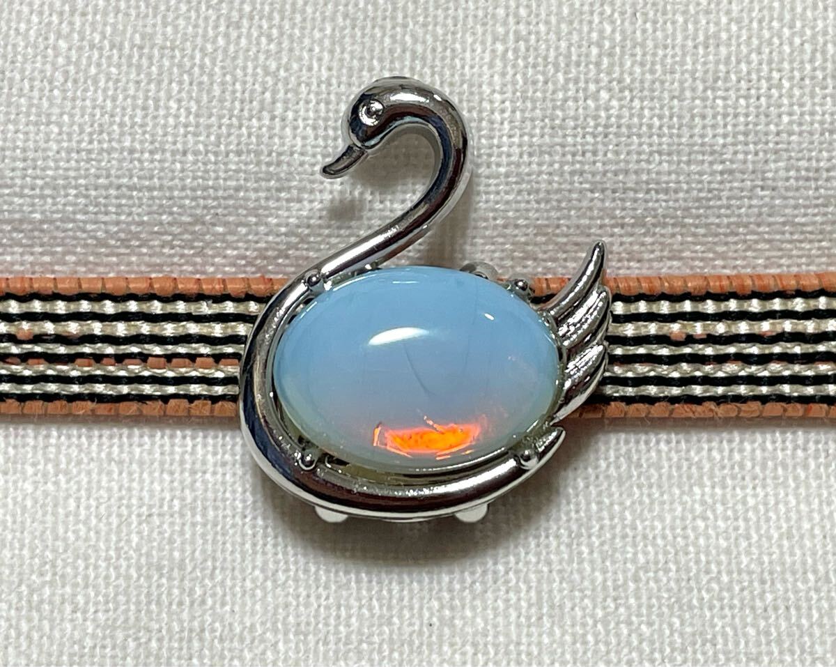 天然石付きの白鳥のチャームを帯留めにリメイクしました。