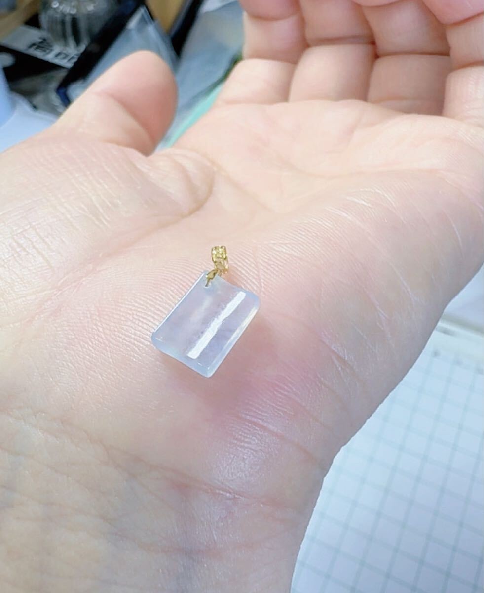 R2-01053天然本翡翠《本物保証》 白氷翡翠 ミャンマー産 ミニペンダント K18 チェーンs925 45cm 一点物 希少 縁起物 お守り パワーストーン