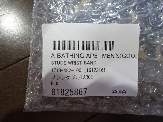 A BATHING APE(ア ベイシング エイプ) スタッズ レザー リストバンド。