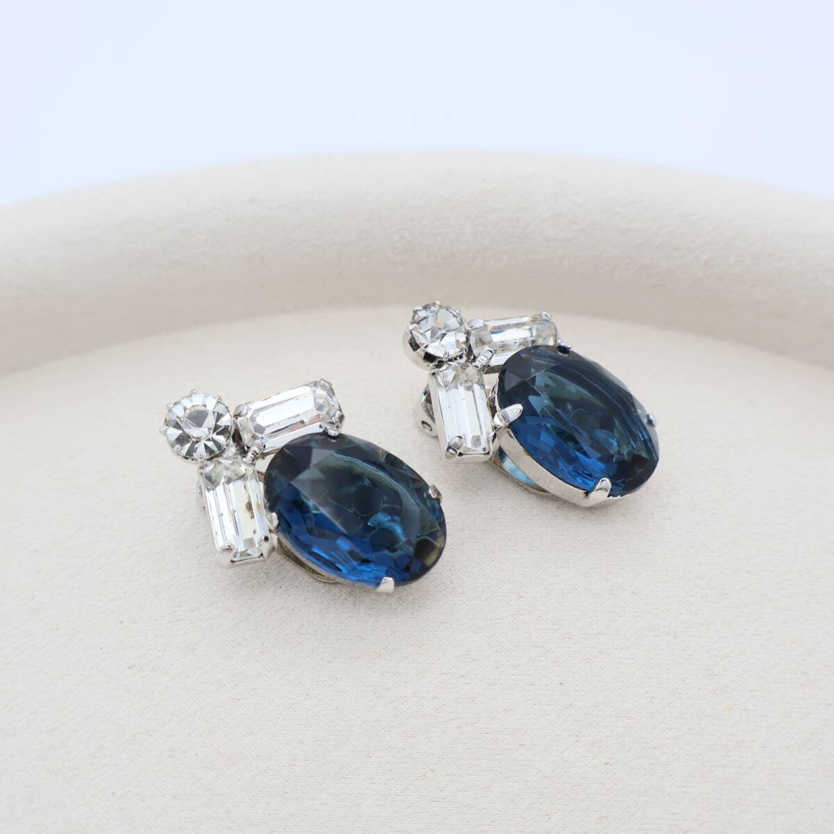 ご覧いただきまして誠にありがとうございます。 ブルーの大きめビジュー イヤリングです。 約2.9cm×約2.1cm (ブルーのビジュー部分:約1.8cm×約1.3cm) ※ヴィンテージ品・長期保管品のため、傷や汚れ・メッキはがれ・擦れ・くすみ等があります。 ※経年品にご理解いただける方のご入札をお願いいたします。 | ||