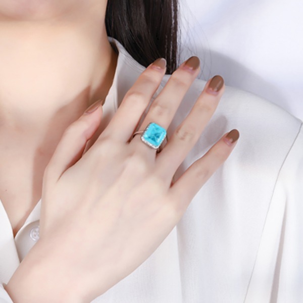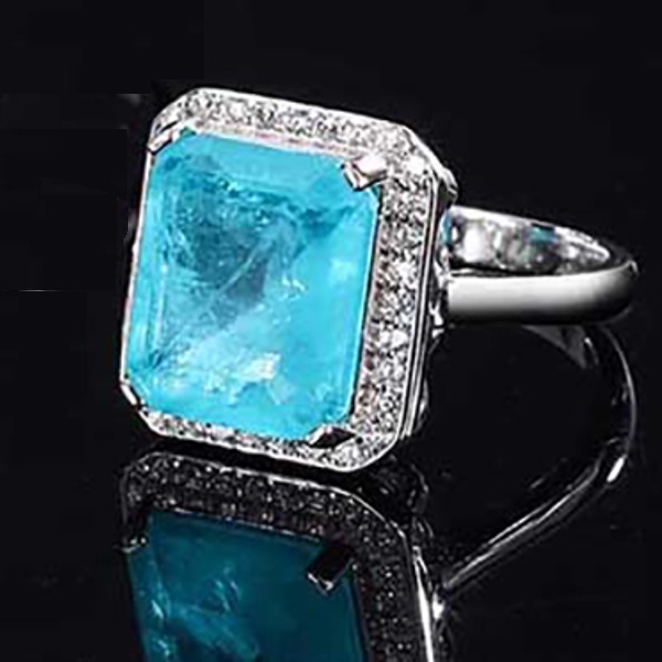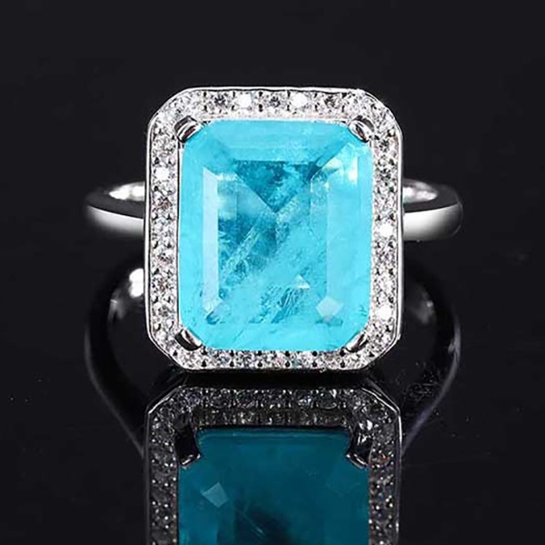 925シルバー10*12mmパライバトルマリンリング、女性チャームウェディングパーティー、ファインジュエリー