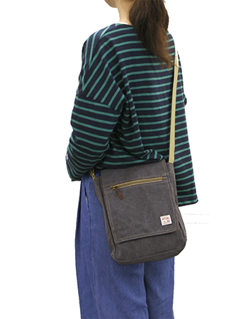 タウン、トラベルに最適な「帆布工房 FLAP SHOULDER(フラップショルダー)」シリーズです。ムラ染めで味のある10号帆布を使用。女性、男性共に使用していただけるスタイルを選ばないベーシックショルダーです。タウンからトラベルまで汎用性の広いB5サイズがピッタリ入るショルダーバッグです。 |