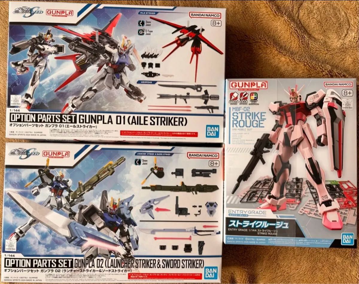 バンダイ ガンプラ 機動戦士ガンダムSEED EG 1/144 ストライクルージュ&オプションパーツセット ガンプラ 01(エールストライカー)&オプションパーツ ガンプラ 02(ランチャーストライカー&ソードストライカー)のセット