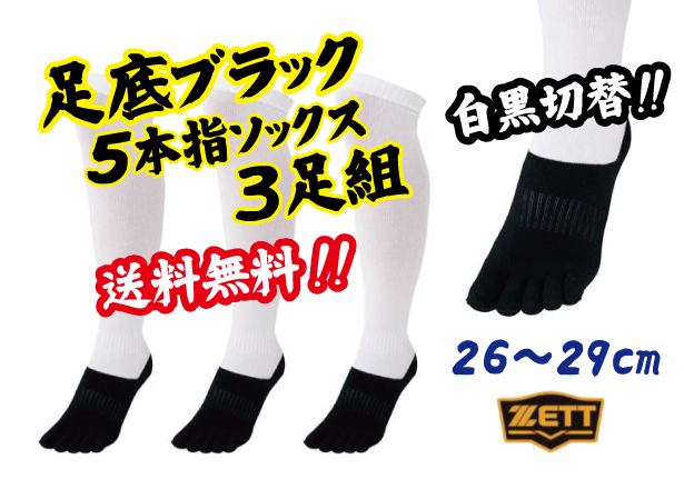 新品即決&送料無料!ゼット「白黒切替・足底ブラック5本指ソックス」3足組/26~29cm/BK135BO