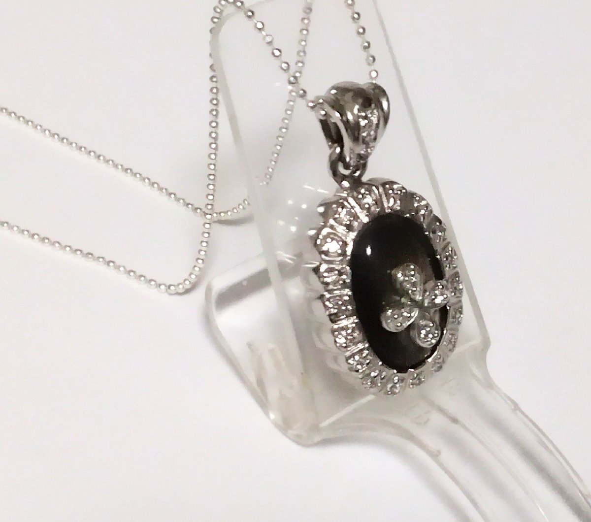 | 特徴 | 特徴: ![]() ★花紋様をクリスタルジルコニアと黒蝶貝でデザイン化した 素敵なシルバーネックレスです。 ![]() オシャレな貴方の ワンポイントアクセサリー! ![]() |