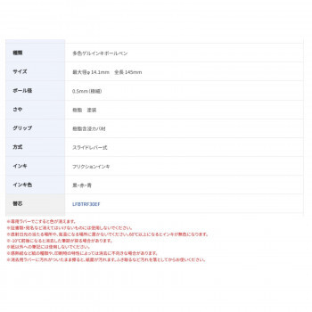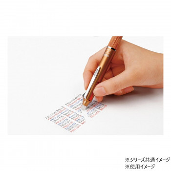 グリップ部にカバ材を採用しました。木の質感が楽しめるとともに、木目をそのまま活かすことで1本1本が異なる模様となります。1本で3色を使い分けでき、何度でも書き消し可能な利便性の高い3色ボールペンです。インキ色は黒・赤・青のベーシックな3色。ペン先は0.5mmの極細タイプで、手帳や資料などの細かい箇所への書き込みに適しています。インキ消去液などの化学式と異なり、消した箇所での繰り返し筆記が可能です。 温度変化によりインキを無色にする「フリクションインキ」を搭載した新発想のボールペン。「フリクションインキ」には消色温度が設定されているため、筆跡をボディ後部の専用ラバーで擦ることで生じる摩擦熱によりインキの色が無色に変わり、筆跡を消すことができます。消しゴムで消す筆記具と異なり、摩擦熱により筆跡のインキを無色にするため、消しカスが出ません。また、鉛筆やシャープペンシルの消し跡に比べて消し残りが非常に少ないのも特長です。 使用方法:筆跡が乾いてから、軸後部のラバーでこすると色が消えます。 ※証書類・宛名書きには使用できません。 |