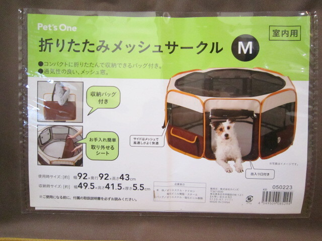 Pet's One 折りたたみメッシュサークル 室内用M(ミドル)サイズ 軽量 折りたたみ式 ペットサークル ケージ 取扱説明付き