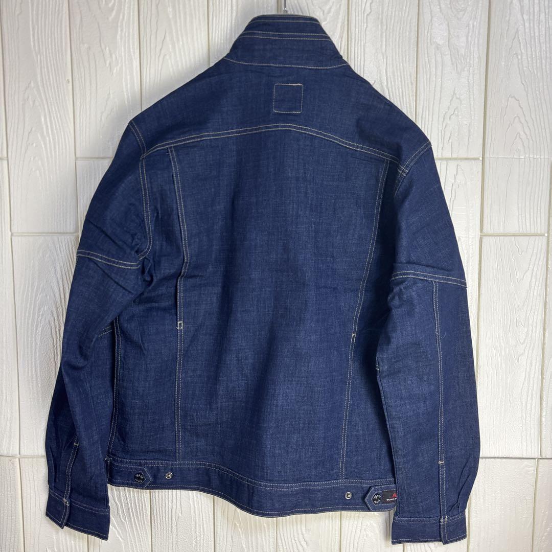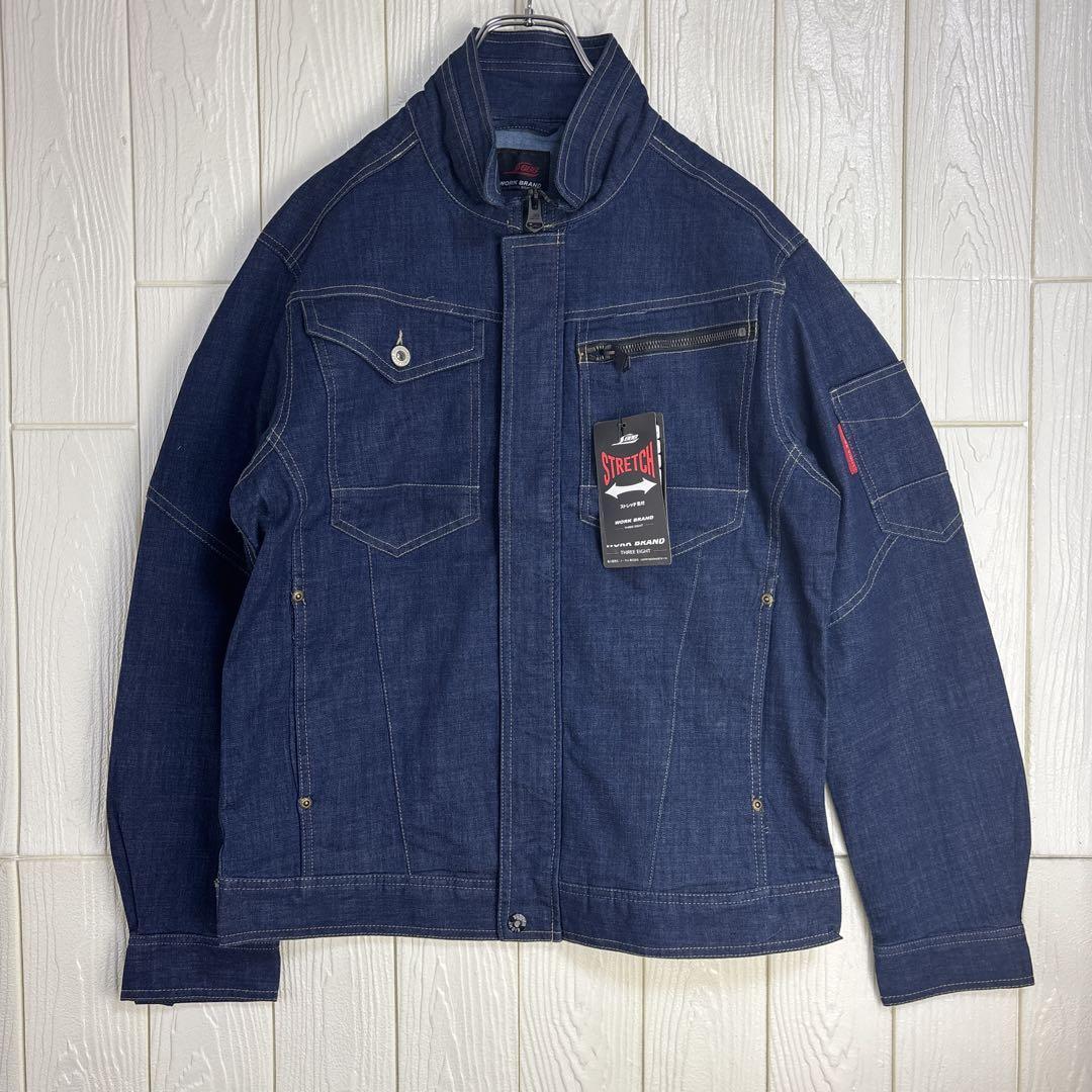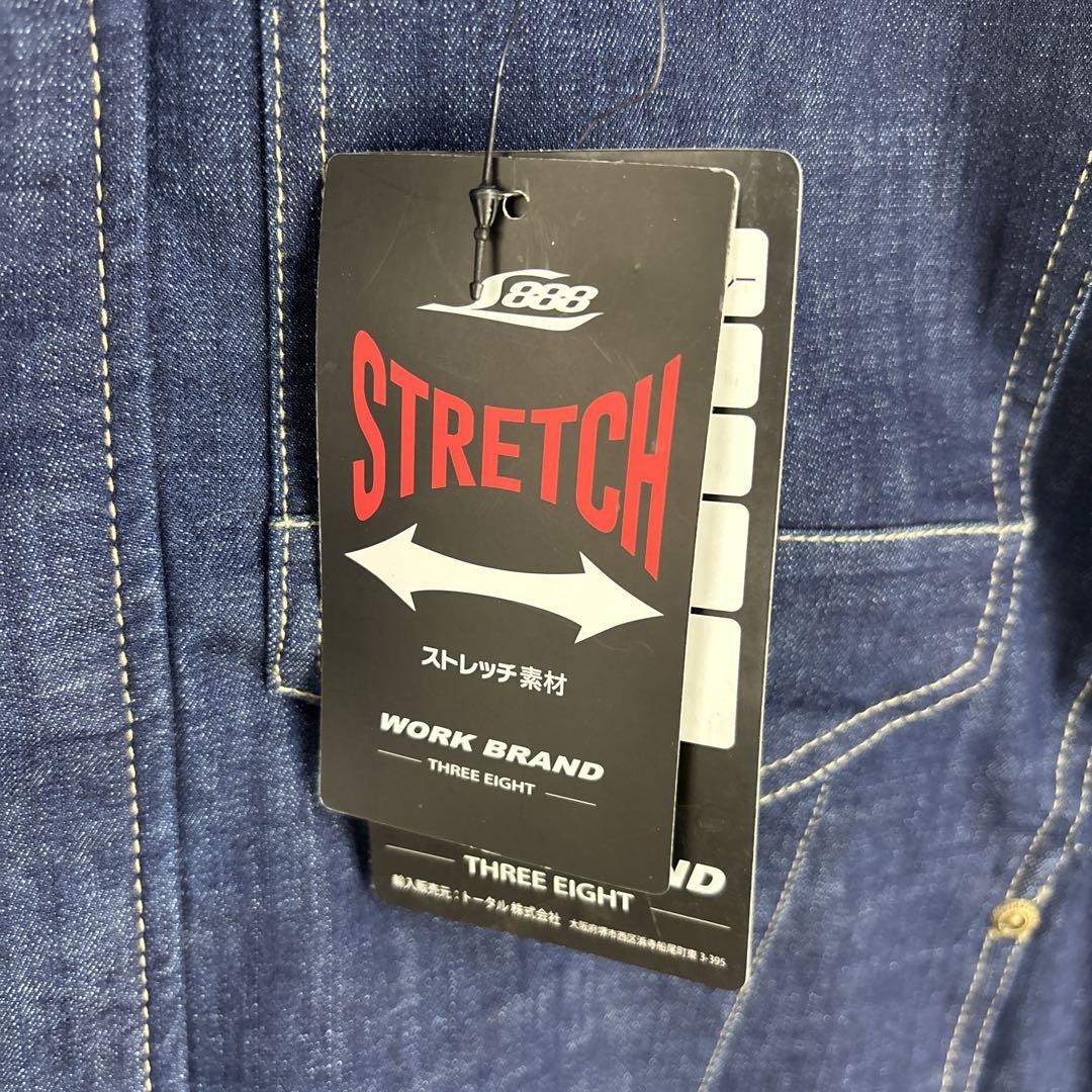 ストレッチデニム素材を使用したダークブルーのLサイズワークシャツ。
