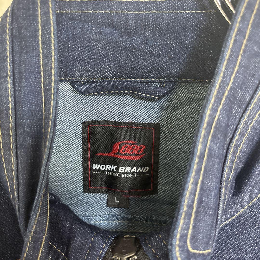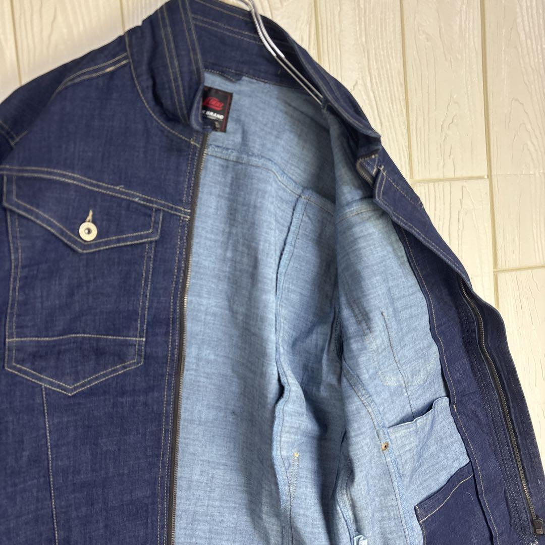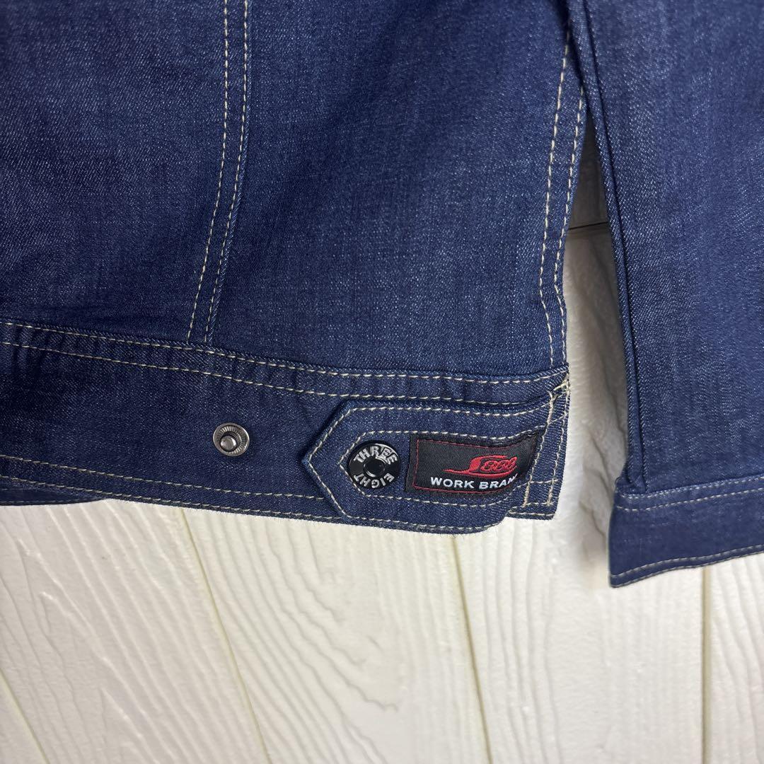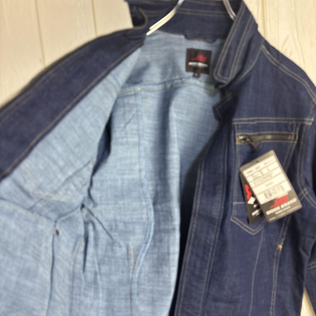 ストレッチデニム素材を使用したダークブルーのLサイズワークシャツ。