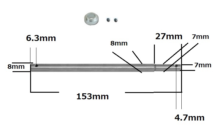 500サイズ用 メインシャフト 153mm 2本セット (参考No. H50011 H50086) です。