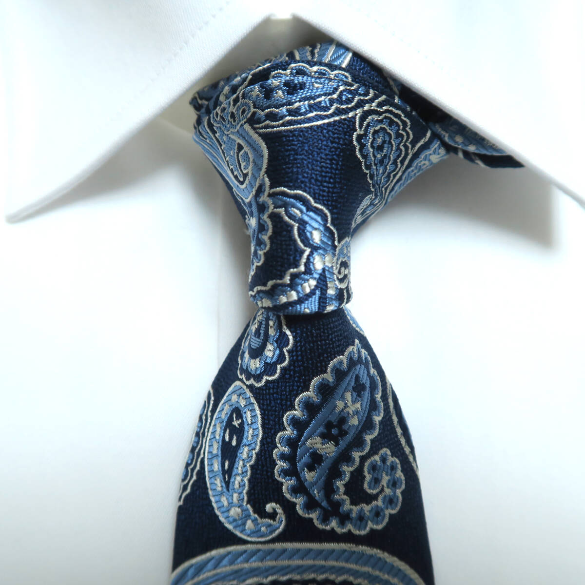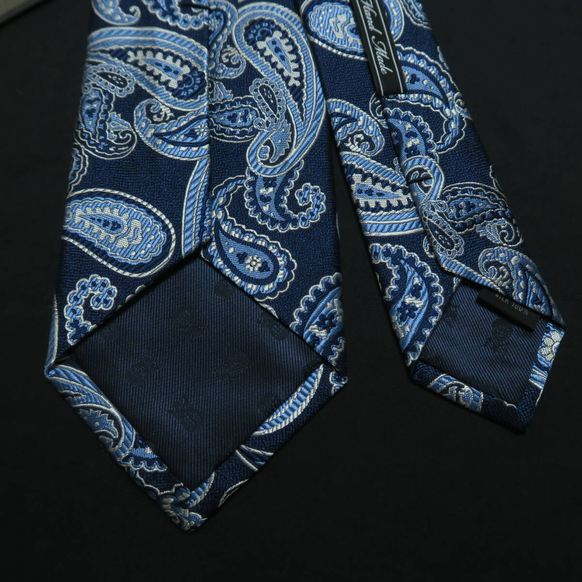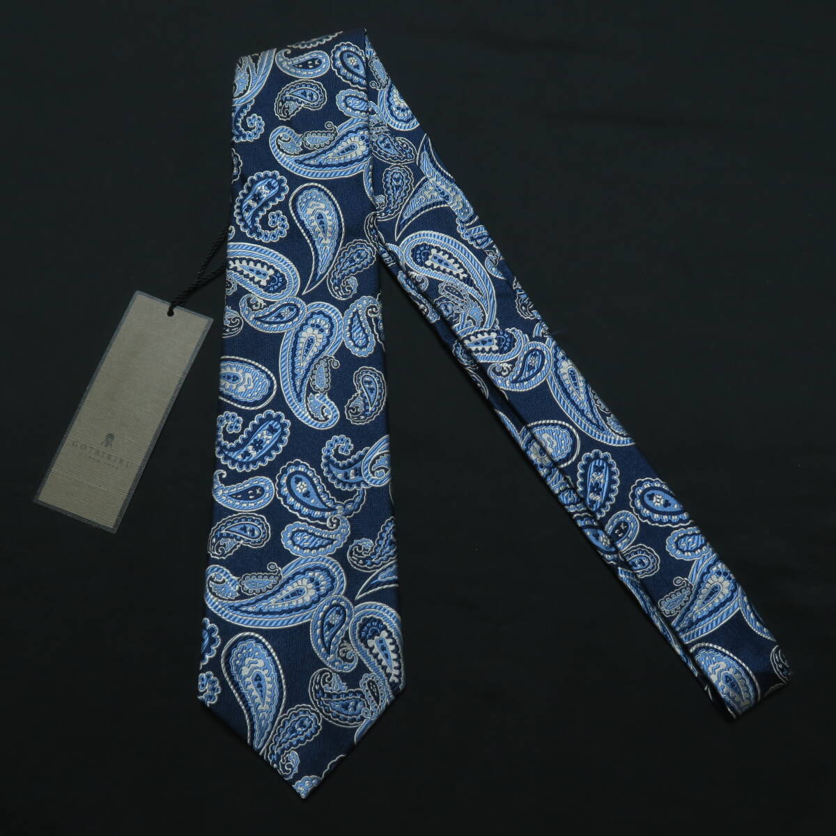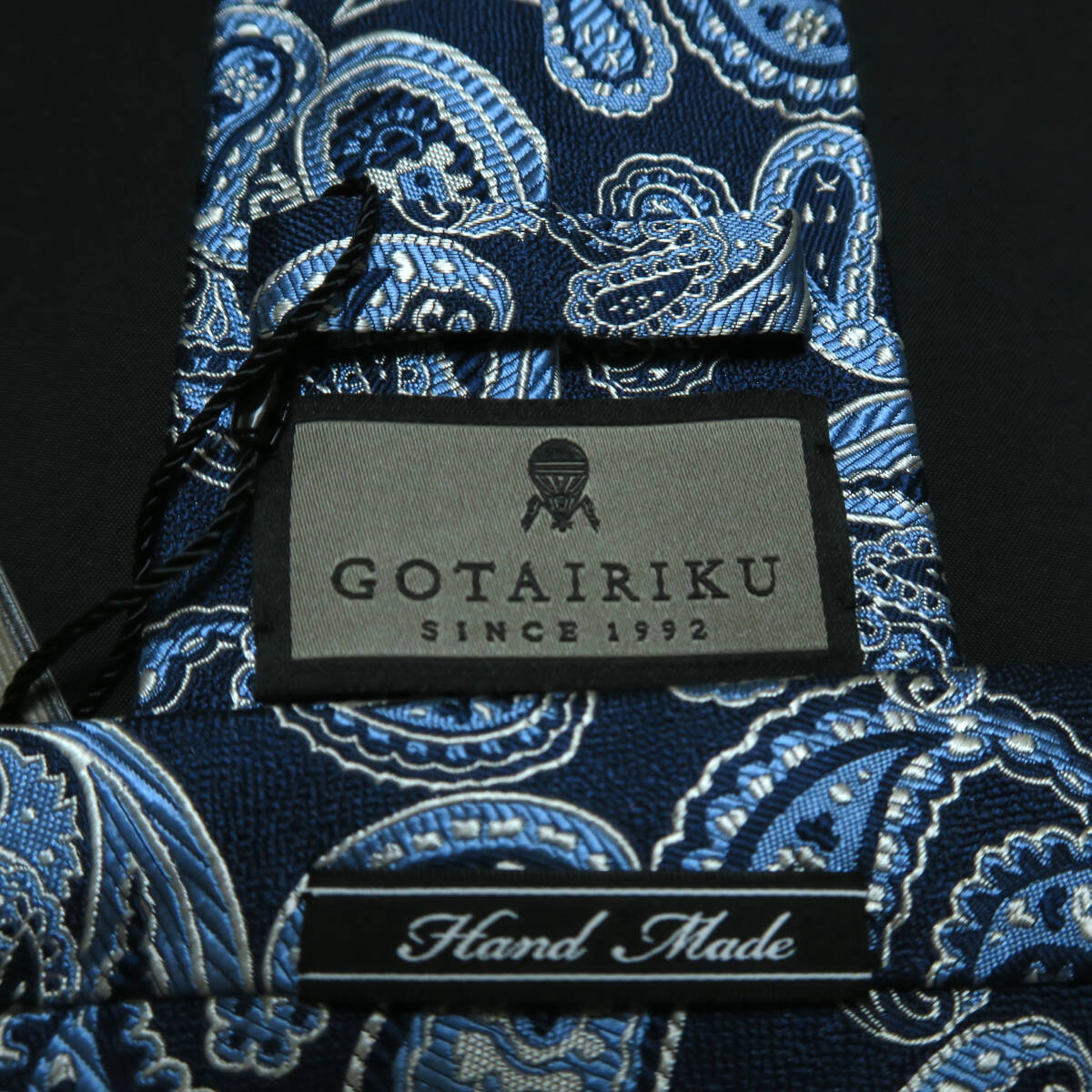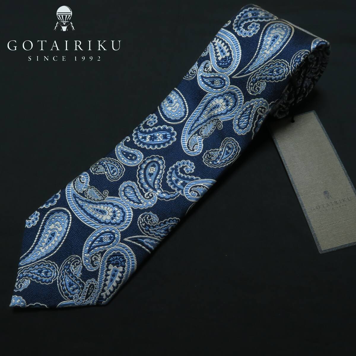 W162■オンワード樫山 五大陸 ゴタイリク 未使用品 ハンドメイド 日本製 紺色系 ペイズリー柄 絹100% 上質 高級ネクタイ 14300円