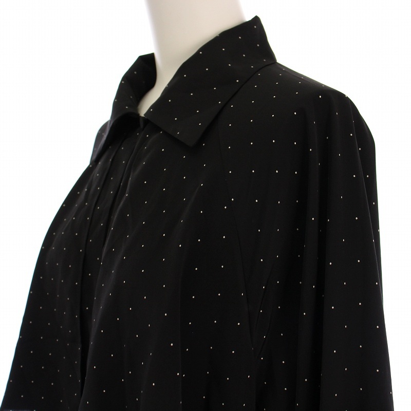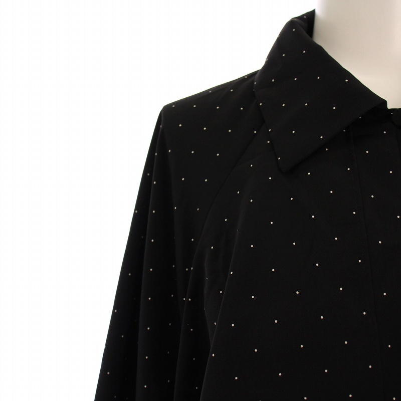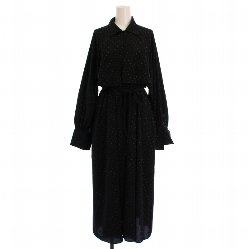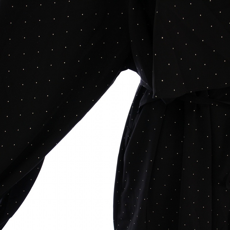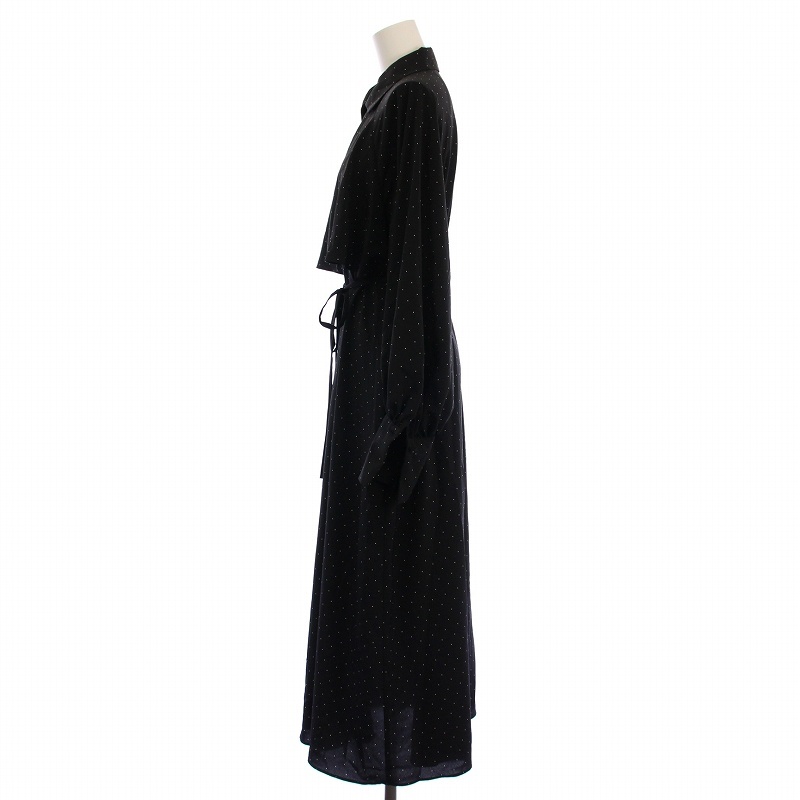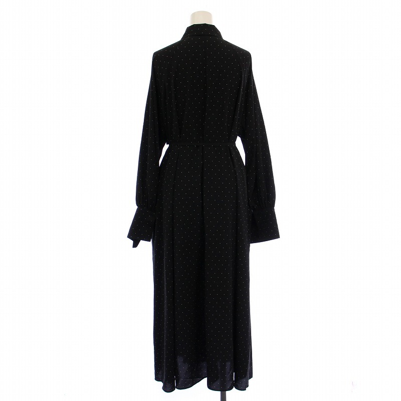 イエナ IENA 24AW ドットサッシュワンピース フレア マキシ ロング 長袖 レギュラーカラー 総柄 ベルト ペチコート付き F 黒