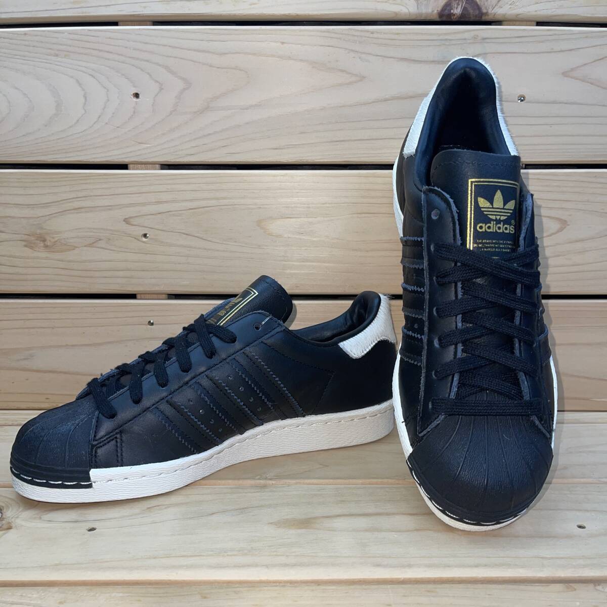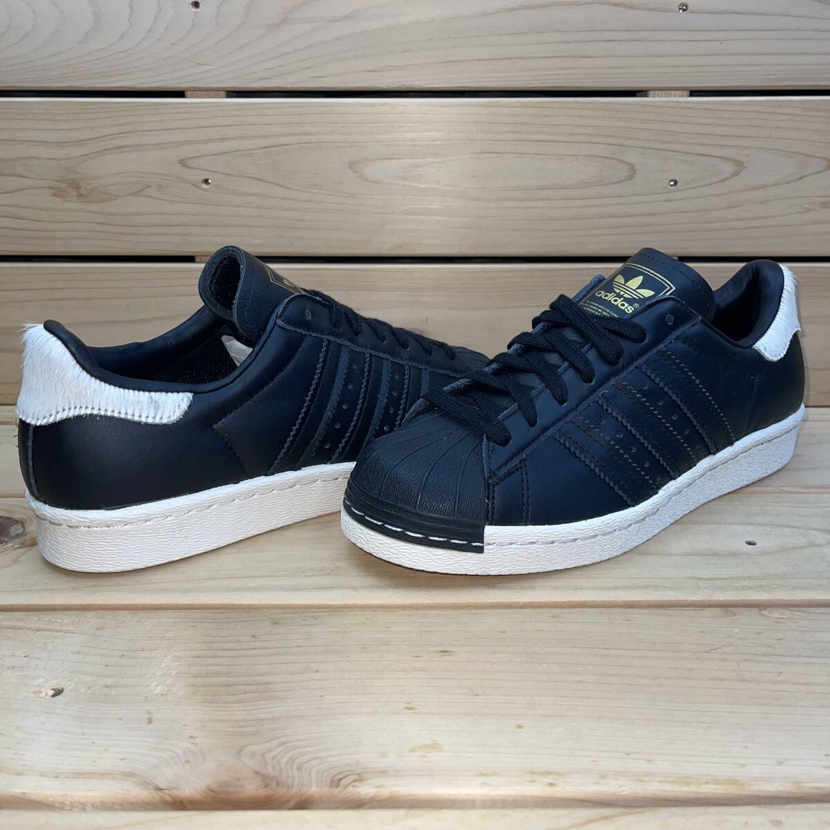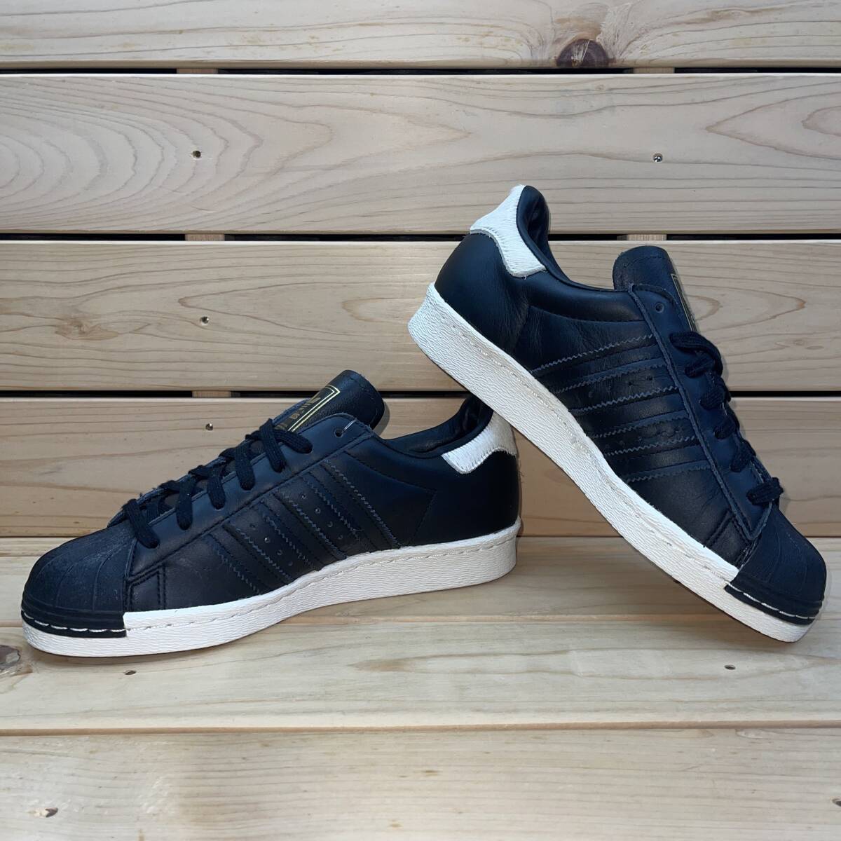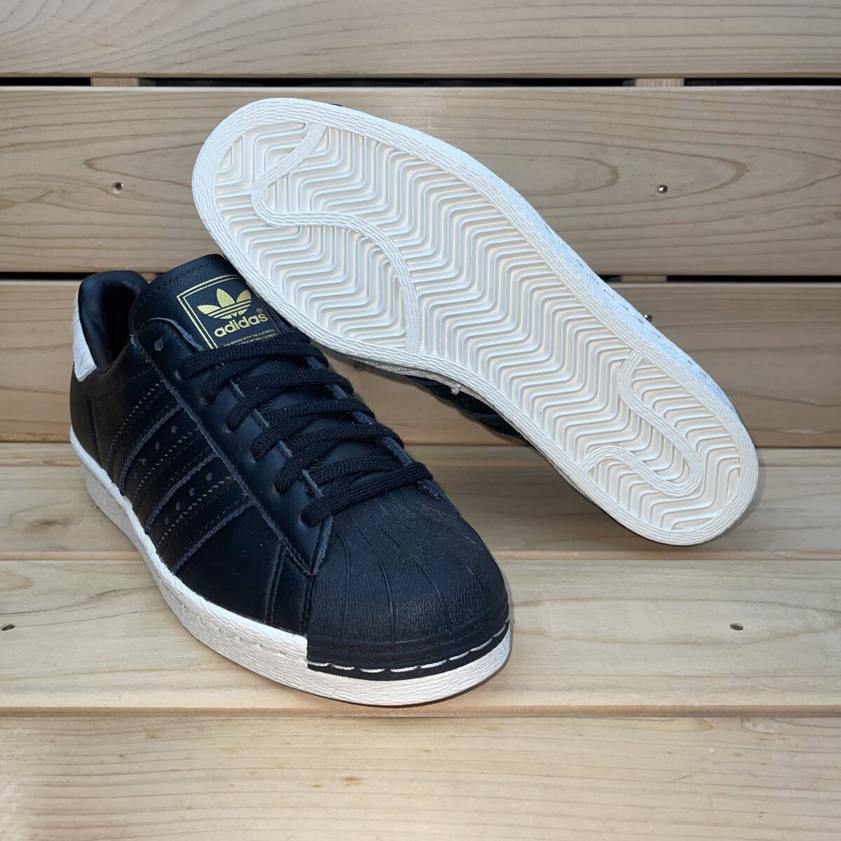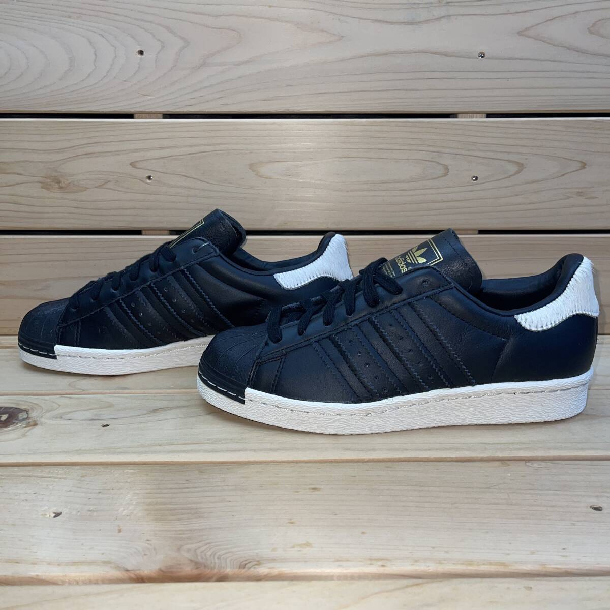 アディダス 22cm オリジナルス アディダス スーパースター 税込定価15400円 ブラック ホワイト adidas SUPERSTAR 80S W 黒 白 天然皮革