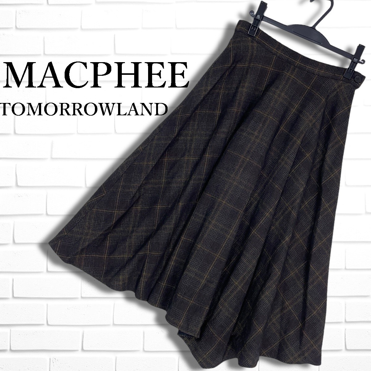 ◆美品◆ MACPHEE TOMORROWLAND マカフィー トゥモローランド ウール ロング チェック スカート レディース 36 S 0345E◇