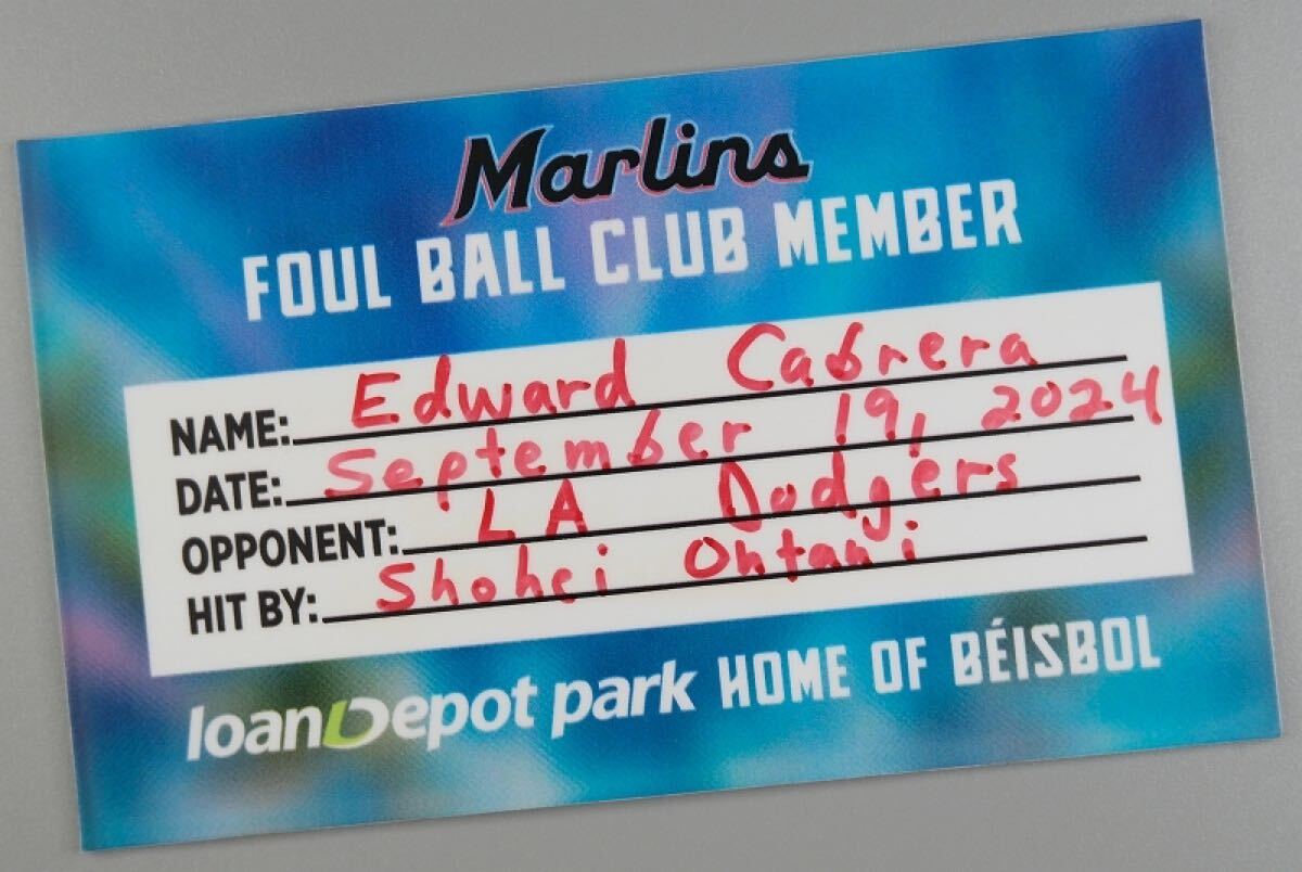 マイアミ・マーリンズ球団発行 「FOUL Ball CLUB」証明書