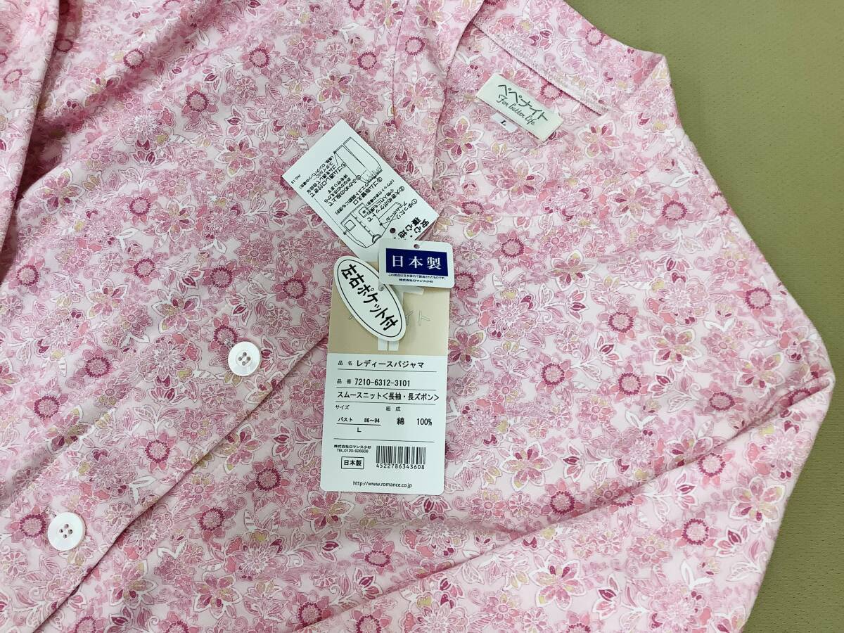 送料無料!新品!Lサイズ綿100%パジャマスムースニット冬〜春日本製メーカー品