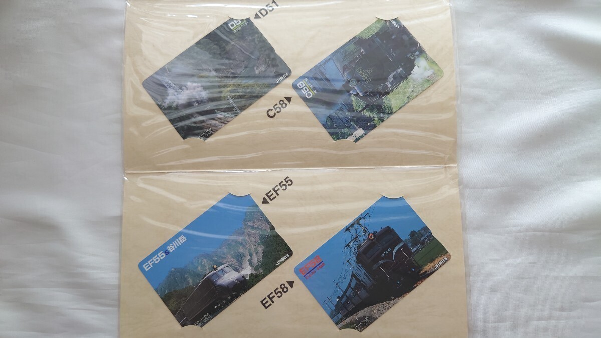 ▲JR東日本▲D51/C58/EF55/EF58▲記念オレンジカード1穴使用済み4枚組台紙付