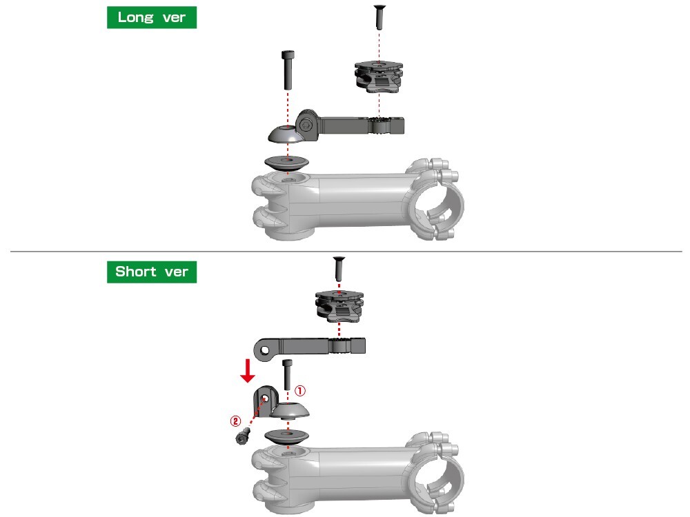 現在装着されているステムのトップキャップのボルトを外し その間に入れて固定するタイプのマウント(キャップの上にかぶせるタイプ)