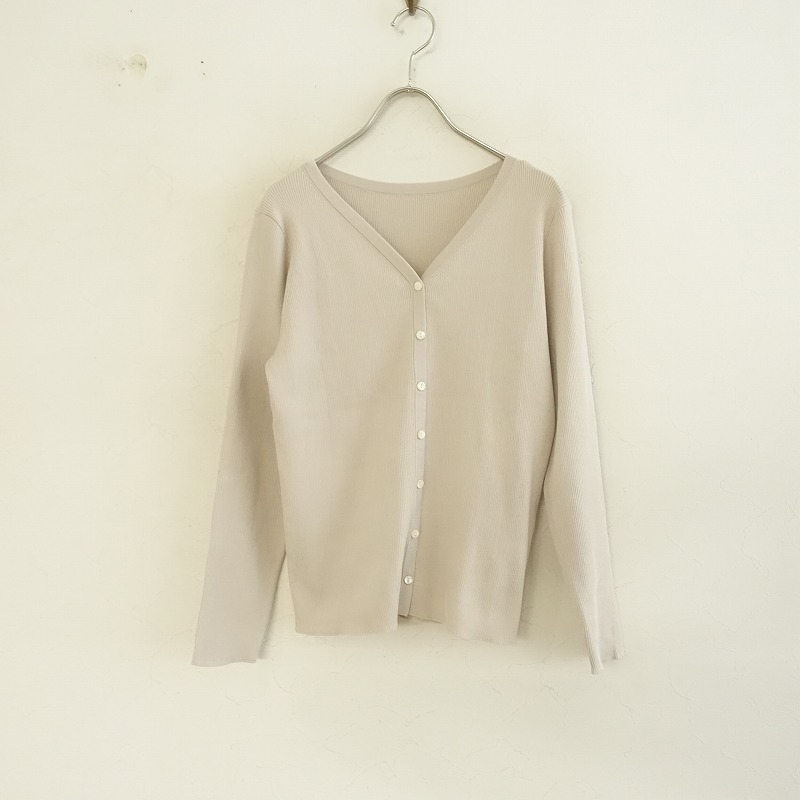 TOMORROWLANDのシルクブレンドVネックリブニットカットソーです。カラーはライトベージュで、シルクブレンドのリブニット素材で仕立てられています。フロントはボタン開閉です。 |