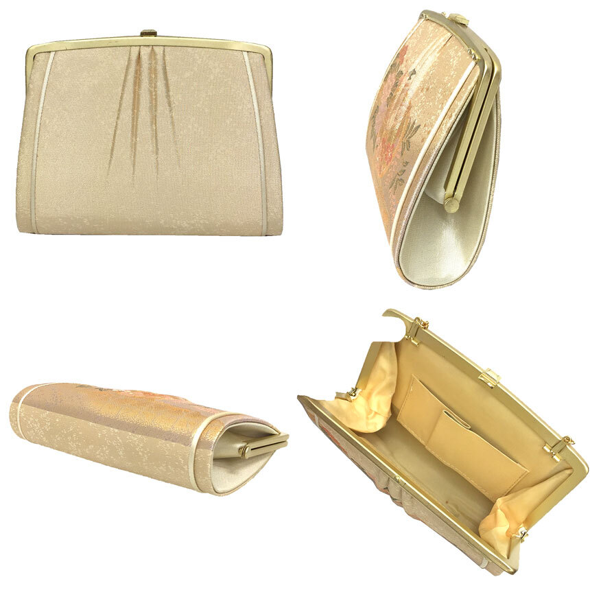 | 商品名 | 京やO224 和装バッグ 和服バッグ 佐賀錦織 金糸 蝶々 笹 梅 藤 牡丹 四季の草花 レトロ ヴィンテージ モダン お茶や習い事に 振袖にも最適 フォーマル~カジュアル 着物用バッグ 着物バッグ 手提げバッグ きものハンドバッグ 振袖 訪問着 附下 色無地 江戸小紋 小紋 紬 美品 正装用から普段使いまで |