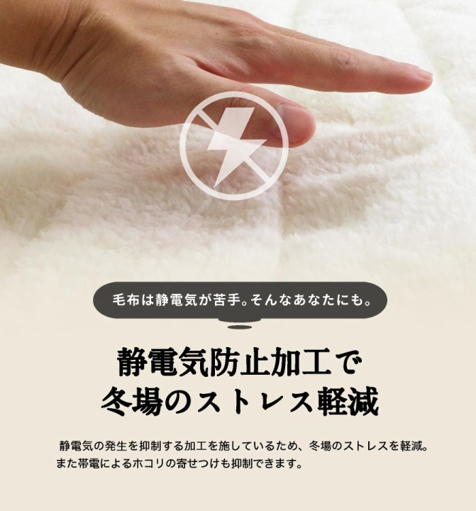 4.静電気防止加工で、冬場のストレス軽減、また、帯電によるホコリの寄り付きも抑制できます。