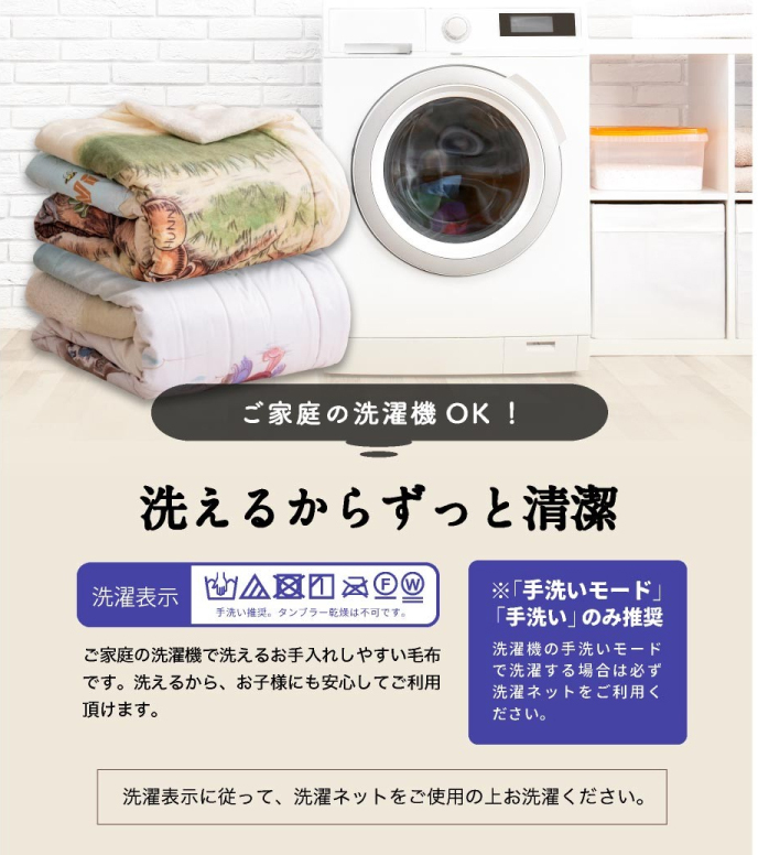 5.ご家庭の洗濯機で洗えるので、ずーっと清潔。お洗濯の際は洗濯表示に従い、洗濯ネットご利用の上、行って下さい。