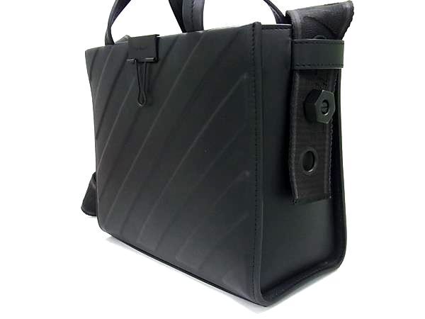 ■極美品■ Off-White オフホワイト レザー 2WAY ハンドバッグ トートバッグ ショルダー 斜め掛け レディース ブラック系 FN1665