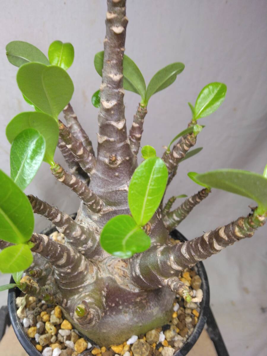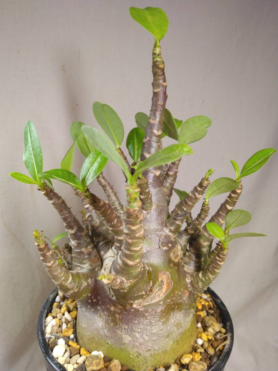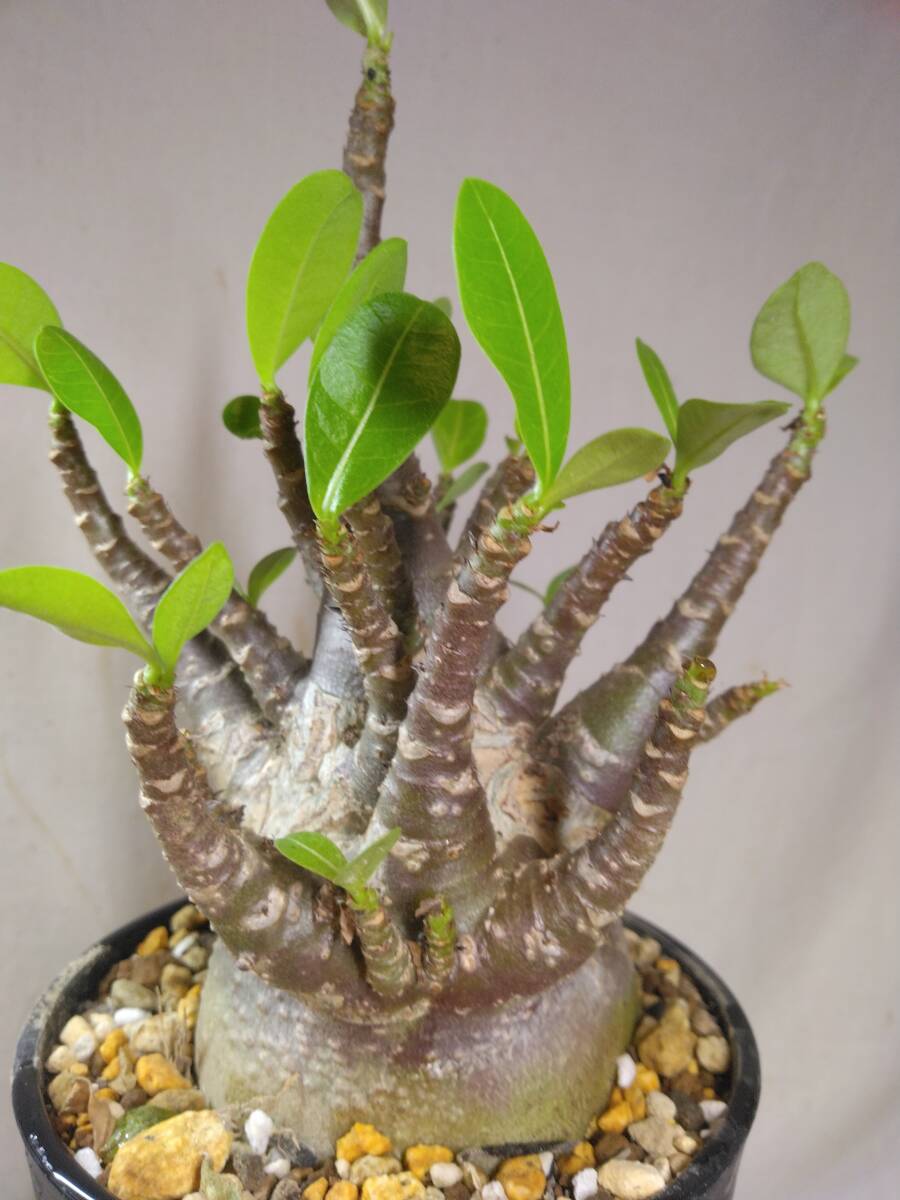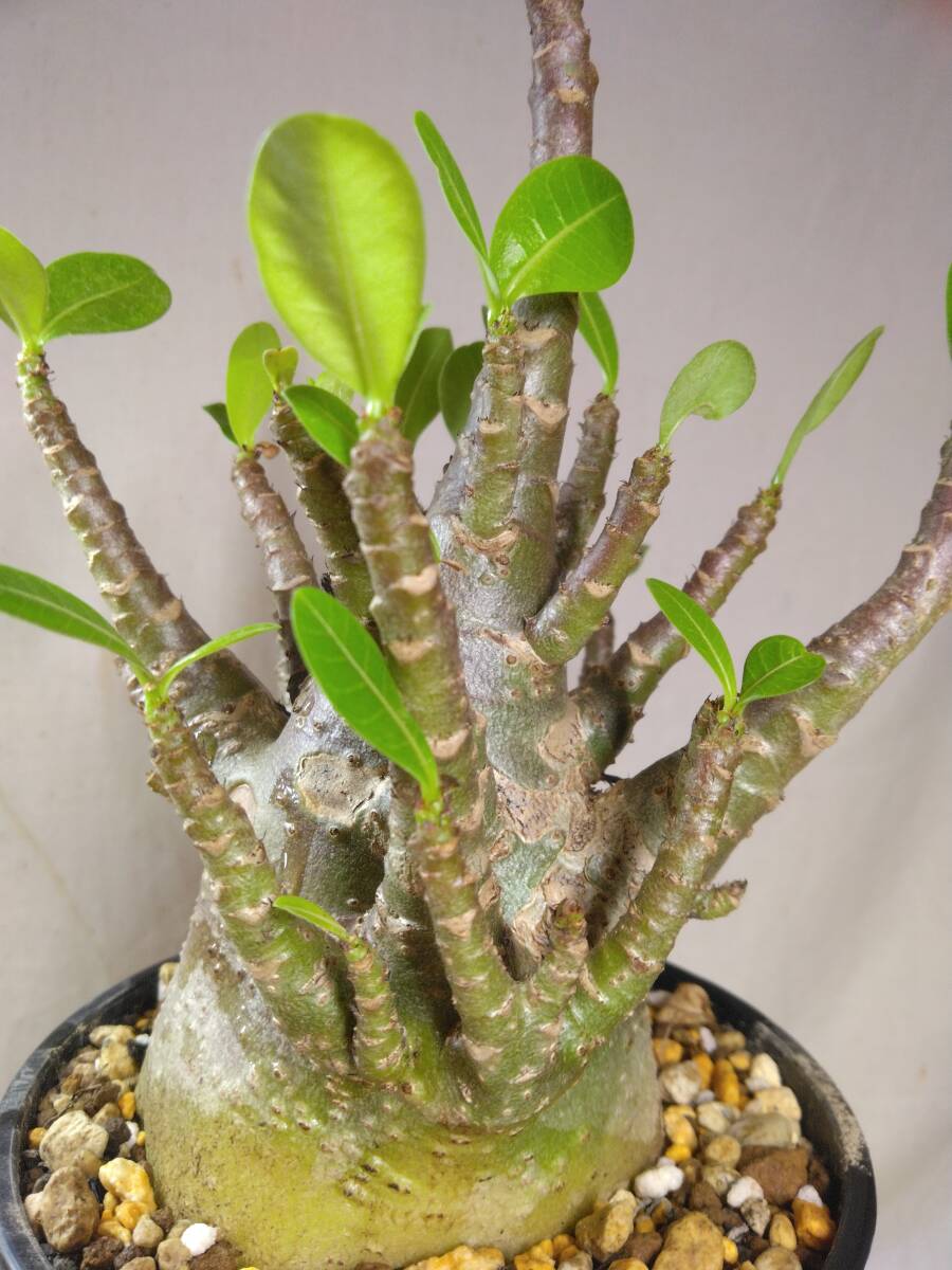 丈夫で育てやすいアデニウムのドワーフになります。super dwarfとも言われることもあります。 ドワーフという名前の通り、上に大きくなるタイプではありませんので、盆栽のように仕立てて楽しむこともできます。