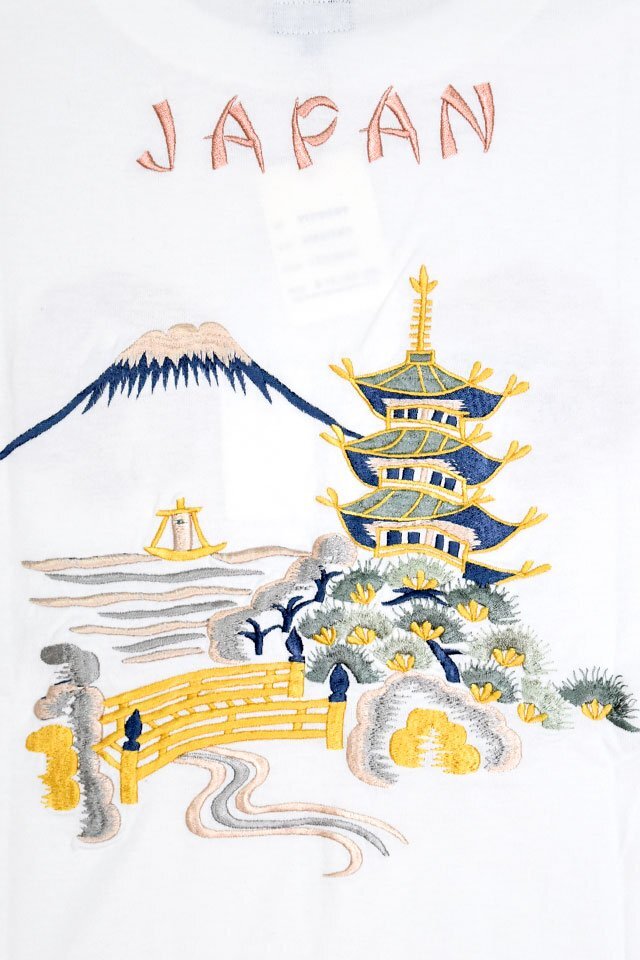 探求心と情熱を持って、上質なアイテムを製作し続けている「テーラー東洋」から、スカ刺繍半袖Tシャツ「LANDSCAPE」(TT79589)のご紹介です。 終戦後、駐在アメリカ兵達のお土産としてスカジャンを作り販売していた『港商商会』を前身に持つテーラー東洋。 富士山や五重塔などの日本を代表する風景を描いた1950年代の作品です。 複数の色糸を使ってグラデーションを表現し、繊細な描写を刺繍で再現しています。 ボディーには、しっかりとした肌触りの良いテーラー東洋オリジナルボディを使用。 夏場でも気軽にスカジャンの雰囲気を味わえるTシャツに仕上がりました。 | |||||||||||||||||||||||||