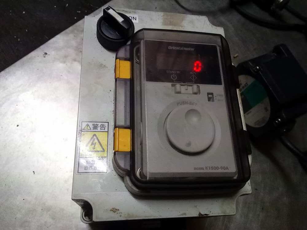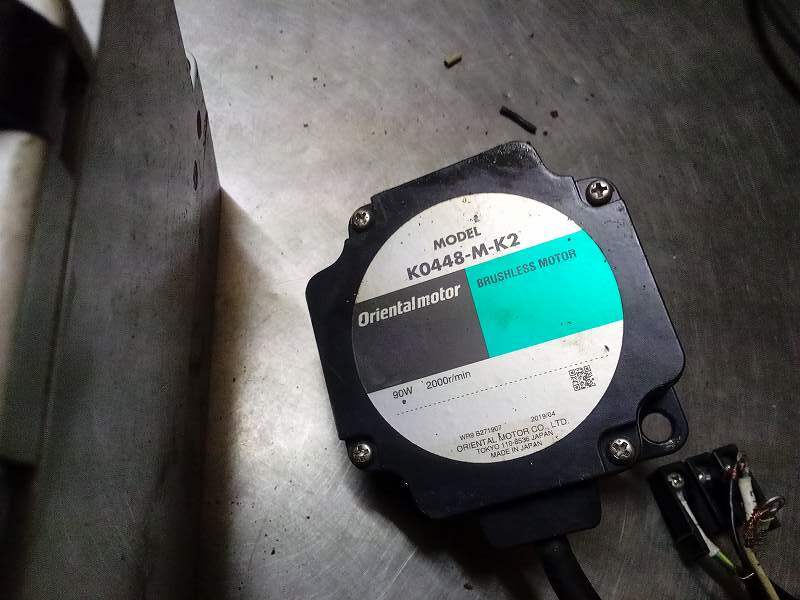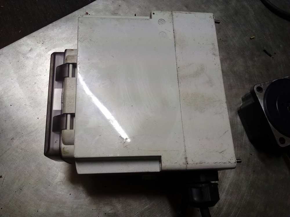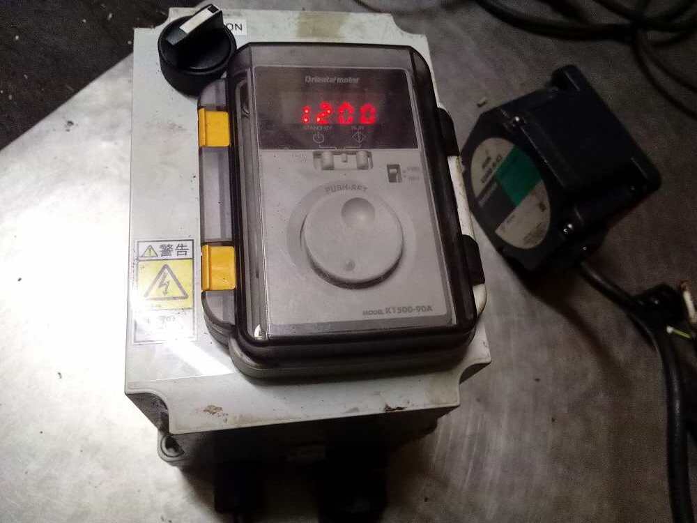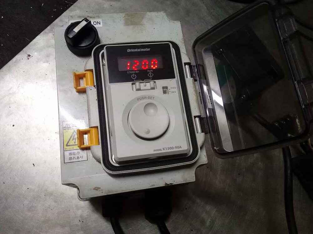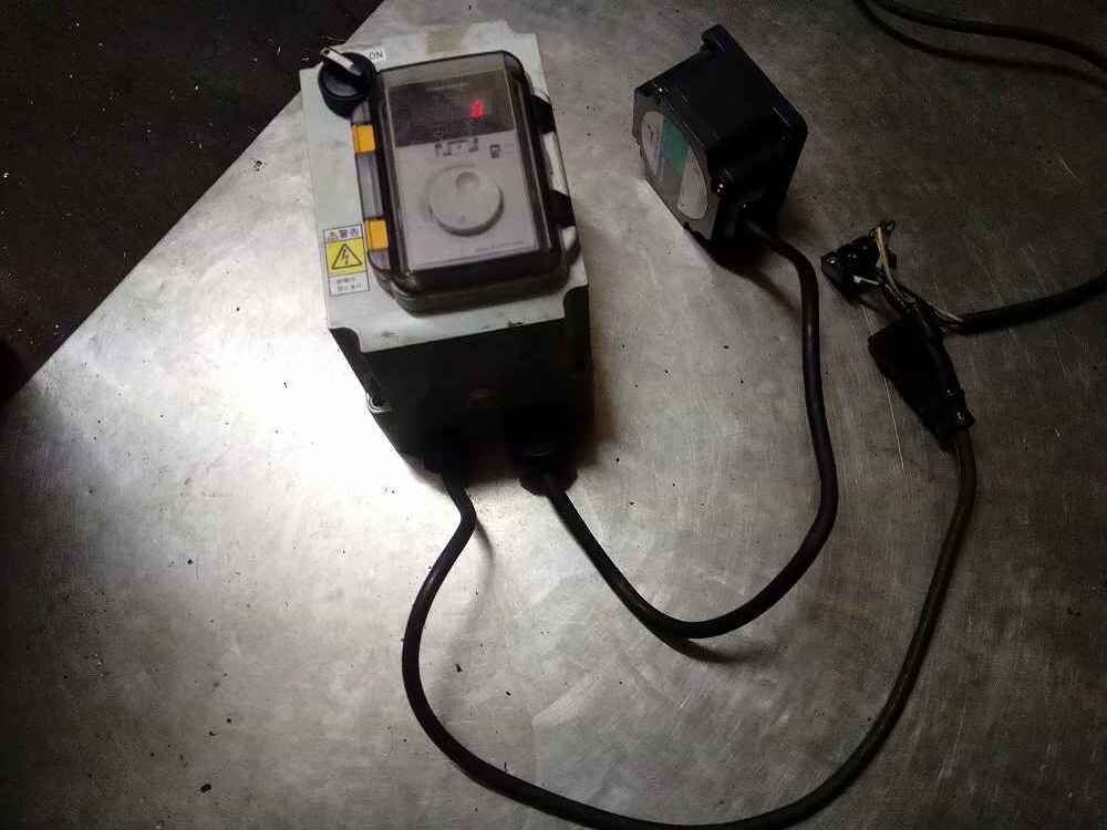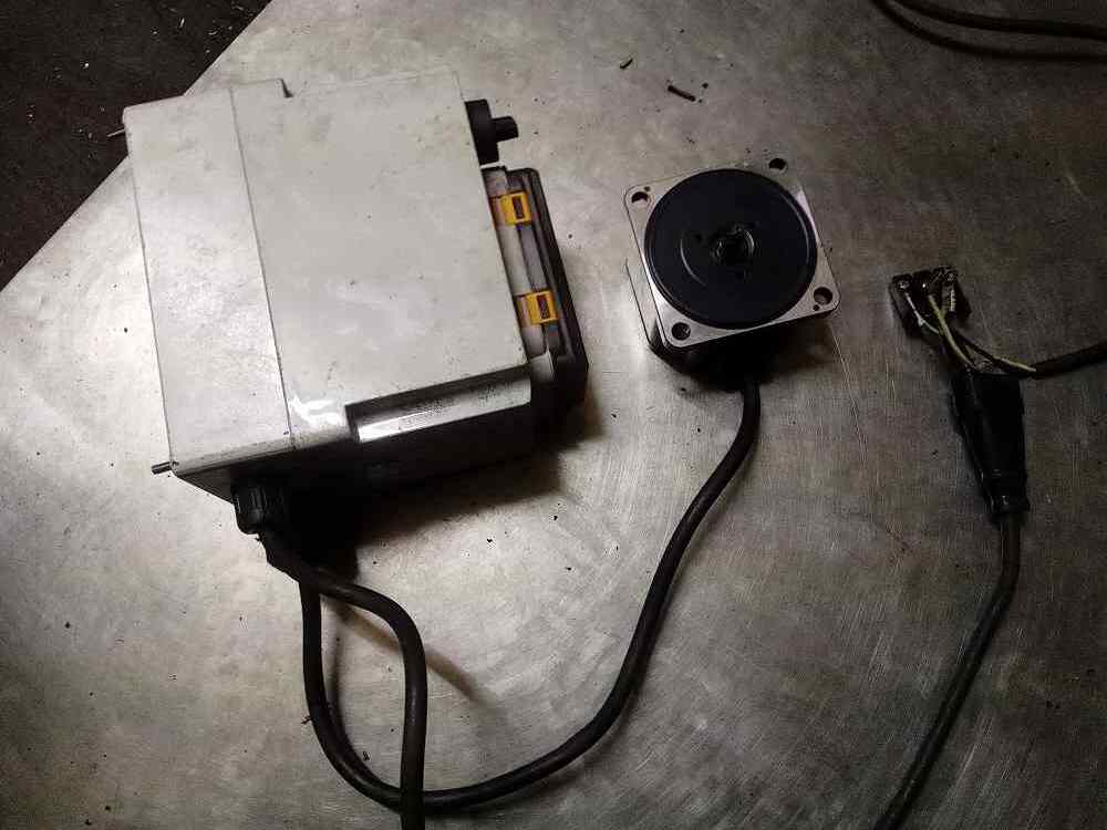稼働機械よりの取り外し品です。ギヤヘッドとプラスチックボックスに組み込まれた変速コントローラーがつながったセットです。