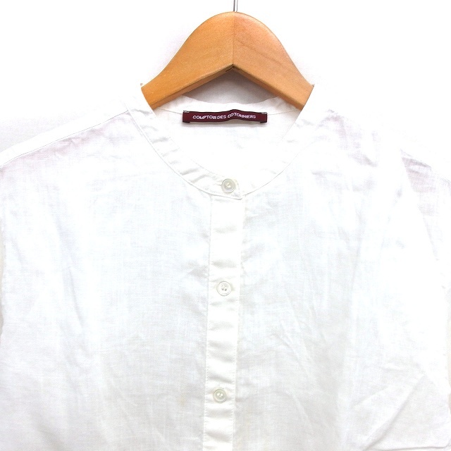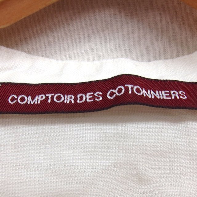 コントワーデコトニエ COMPTOIR DES COTONNIERS リネン スモールカラー シャツ ブラウス 透け感 スリット ラウンドヘム 長袖 XS