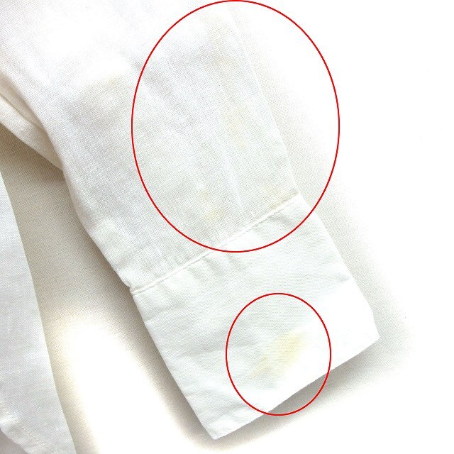 【状態】この商品には下記のようなダメージがあります。 ・前身頃中央に4cm程度の黄色の汚れ ・左袖に4cm程度の黄色の汚れ ・後身頃左裾に5mm程度の黄色の汚れ ※全体的に中古品としての使用感と上記のようなダメージがありますが、通常使用には支障のない商品です。掲載写真や記載内容をご確認いただき、ご理解の上ご購入ください。