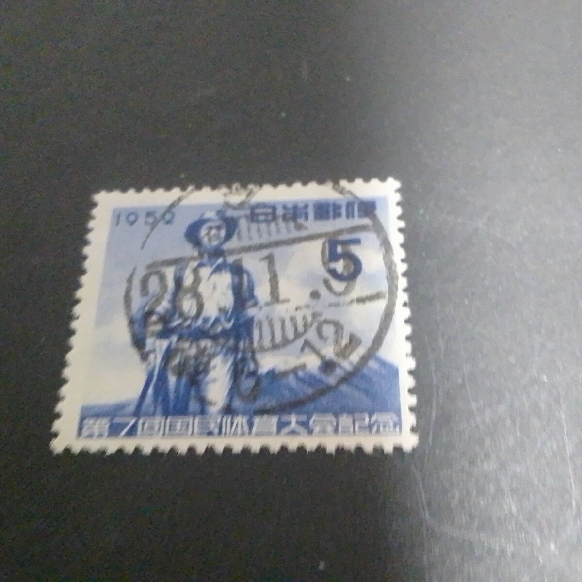 日本、1952/7回国体、5円登山、芝28、11、9、完全満月消し、状態良好