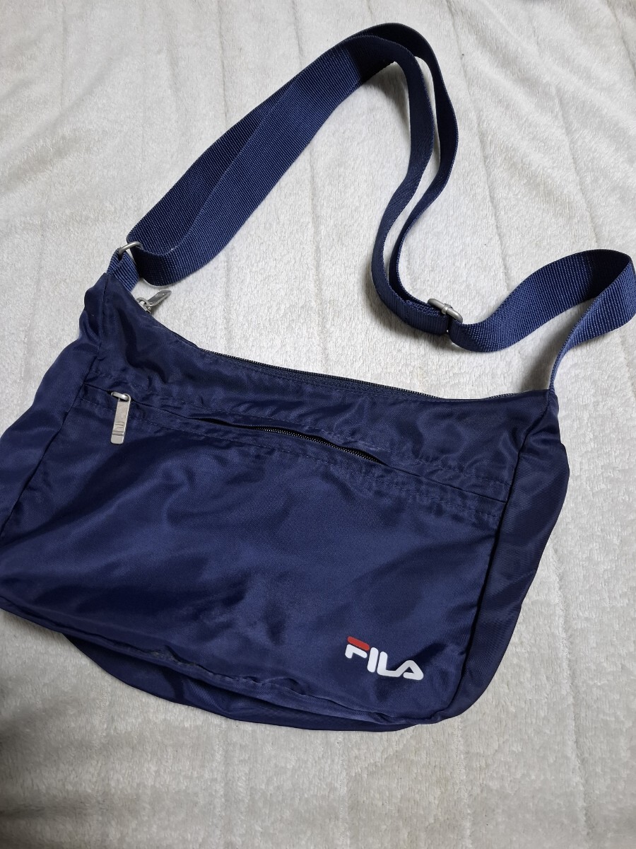 ●【商品】フィラのショルダーバッグになります。ナイロン製で、しっかりとしていて、軽量☆各種収納ポケット、スペースがあるので整理しやすい便利なアイテム☆ネイビーカラーなので、男女兼用でお使い頂けます。